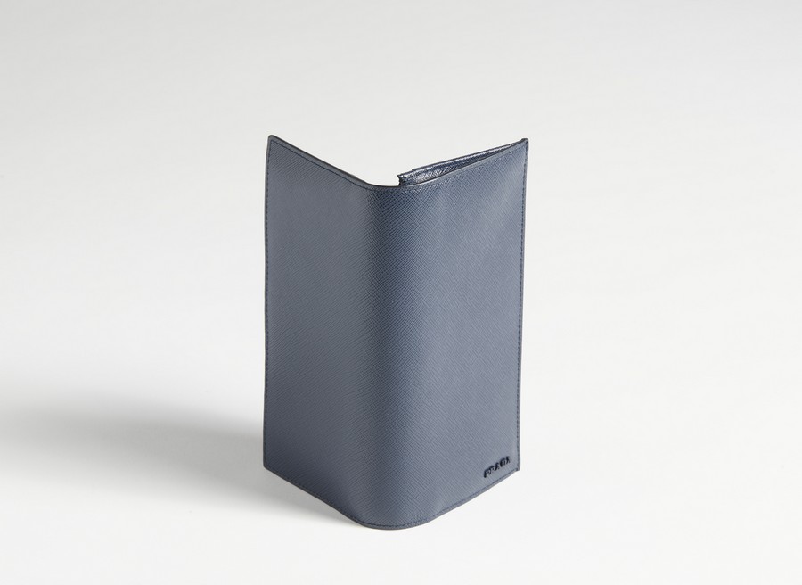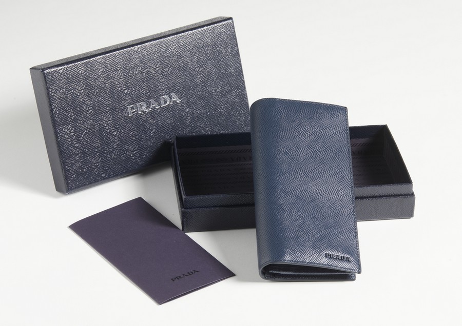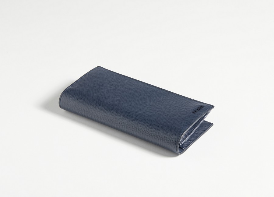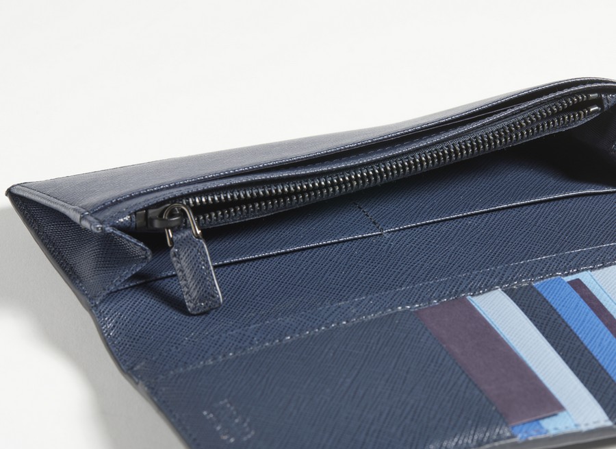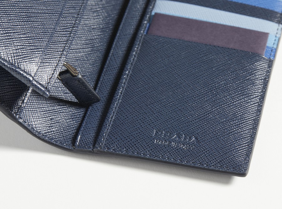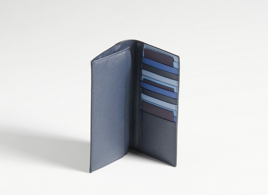 PRADA MILANO Portafoglio grande blu. Pelle. Cm 9,50 x 19,00. Portafoglio grande di Prada in pelle Saffiano multicolore baltico.