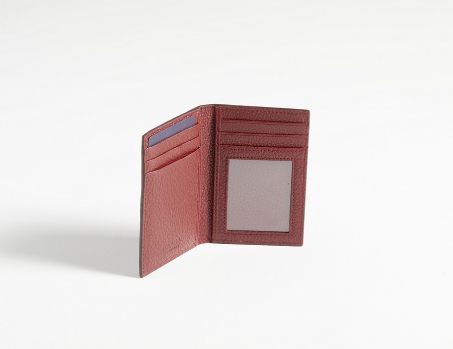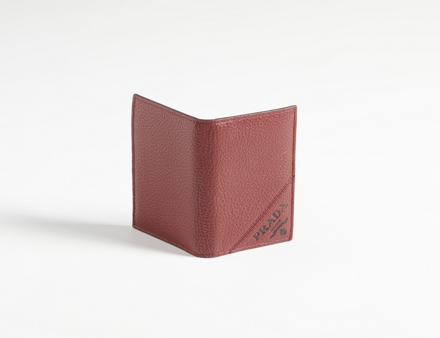 PRADA MILANO Portacarte rubino. Pelle. Cm 7,50 x 11,50. Portacarte in pelle di vitello color rubino, logo al fronte