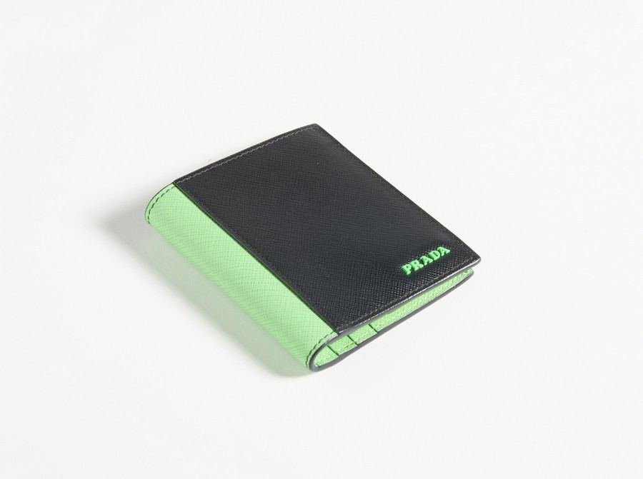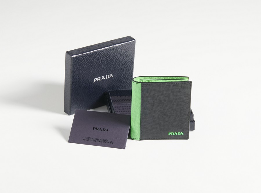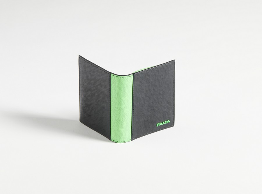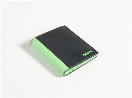 PRADA MILANO - Portafoglio orizzontale nero e verde fluo .