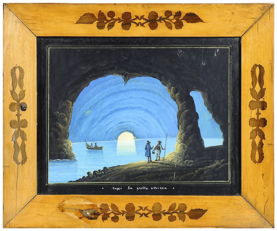CAPRI LA GROTTA AZZURRA gouache su carta, in cornice lievi difetti cm 28,5x36...