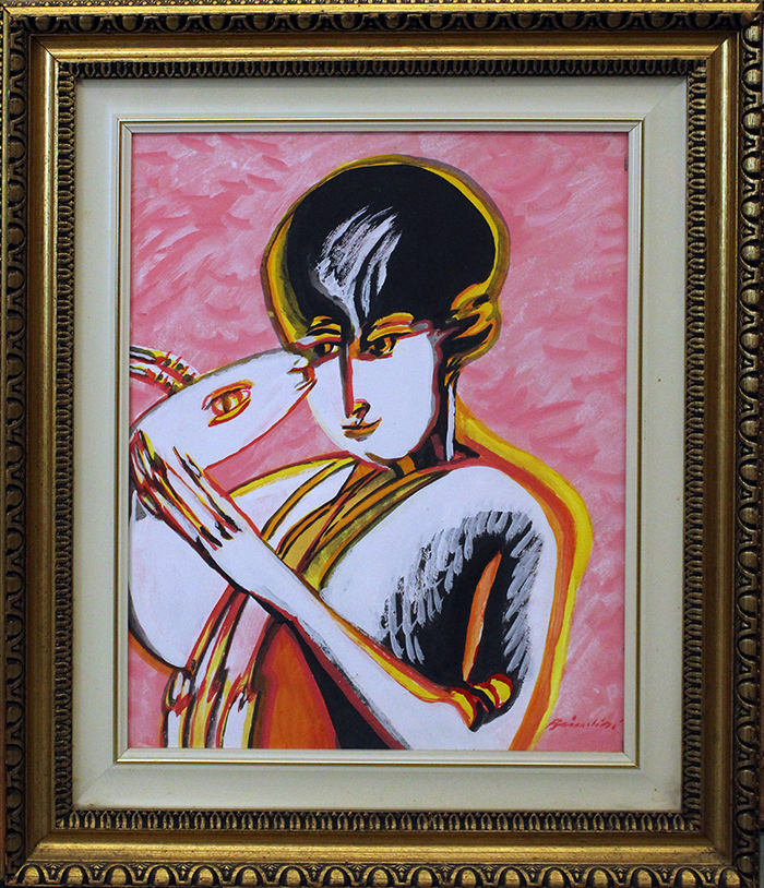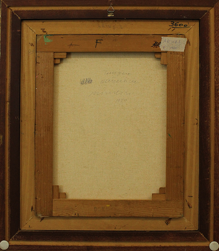 REMO BRINDISI, anni 80' "Pastorale", tempera su carta intelata, cm 50x40 con cornice 70x60x6 kg 5. Al verso : tecnica firma e anno . A l fronte: firma in basso a destra. Certificato di provenienza della Daliano Ribani Arte. Opera con cornice in omaggio.