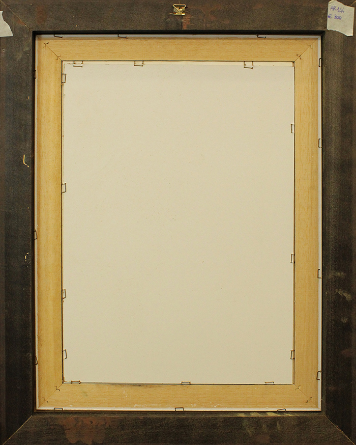 GIUSEPPE SERAFINI , 1984, "Donna", tecnica mista su carta cm 48x35 con cornice 66x52x4 kg Al verso: firma e anno in basso centrale. Presenta leggeri segni del tempo. Certificato di provenienza della Daliano Ribani Arte. Opera con cornice in omaggio.