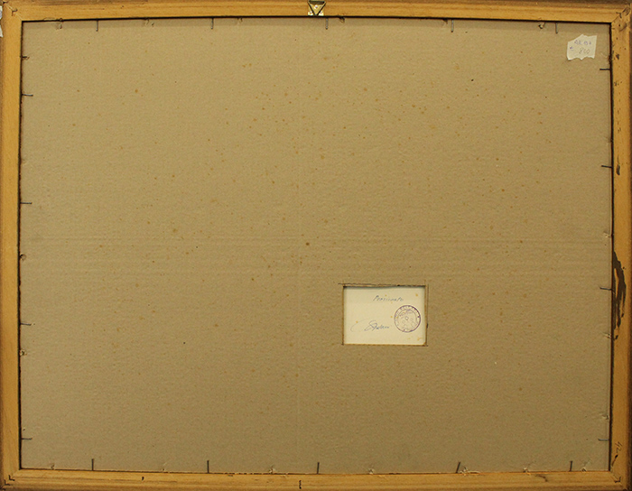 GINO BELLANI 1960, "pensionato", tecnica mista su carta cm 50x70 con cornice 66x85x2 kg 3 al fronte: firma e anno in basso a sinistra. Al verso : timbro,titolo e firma dell artista. Certificato di provenienza della Daliano Ribani Arte. Opera con cornice in omaggio.