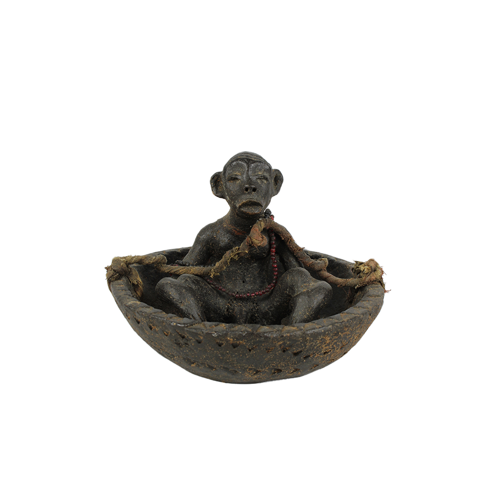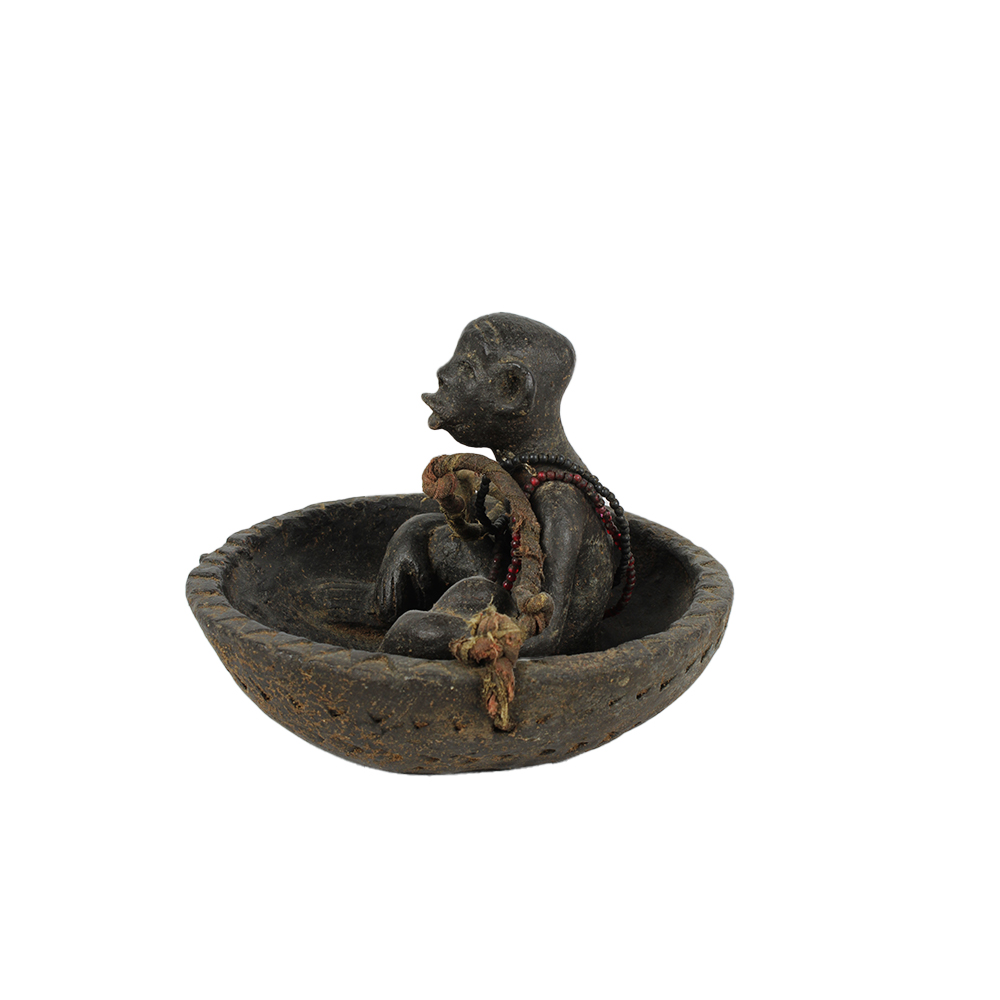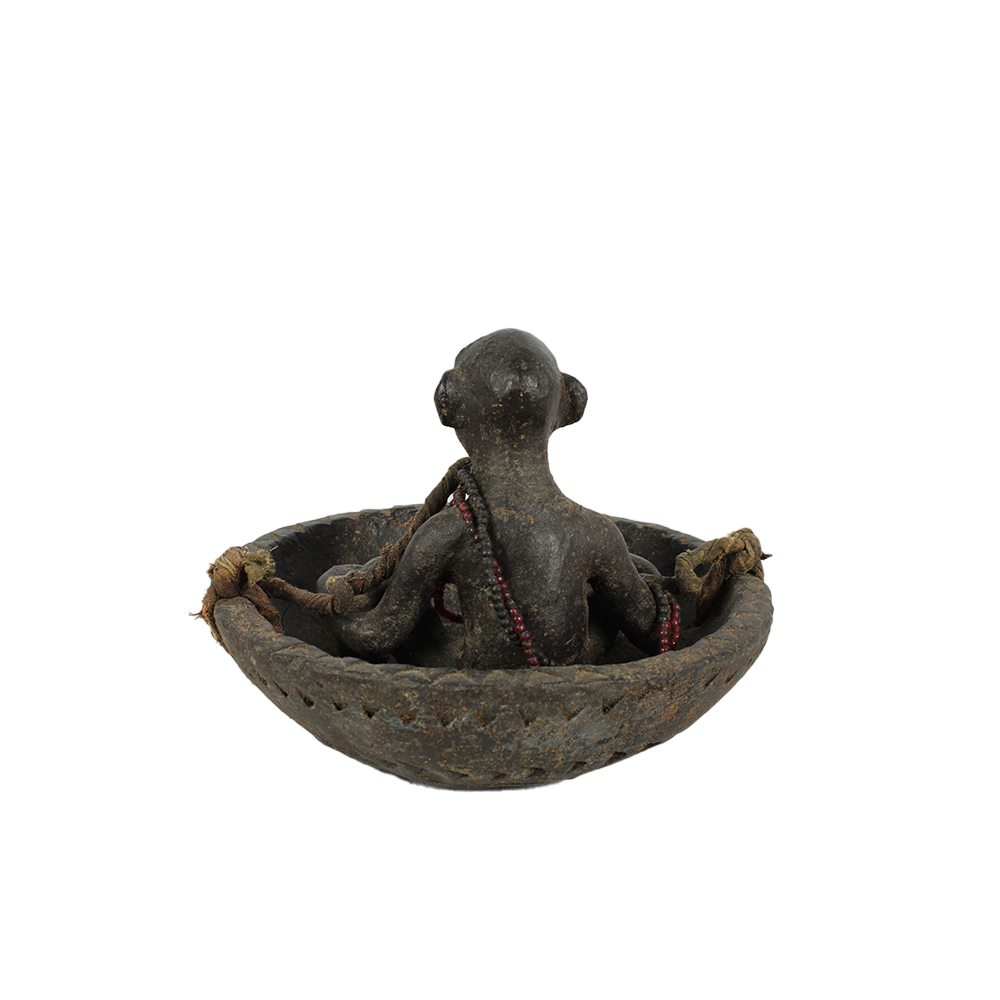FETICCIO BAROTSE in terracotta perline di vetro e stoffa. Appeso di fronte la capanna ha la funzione di proteggere dai ladri. Zambia h cm 13 x 15,5