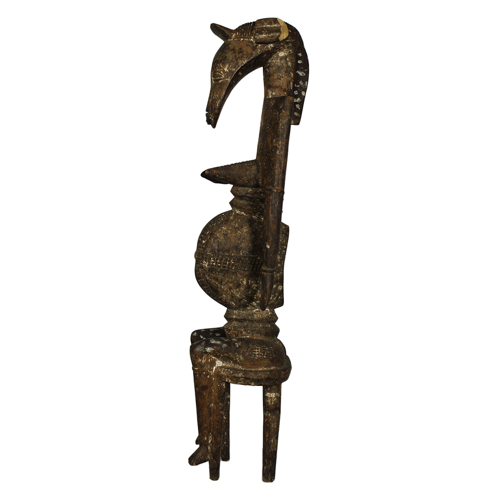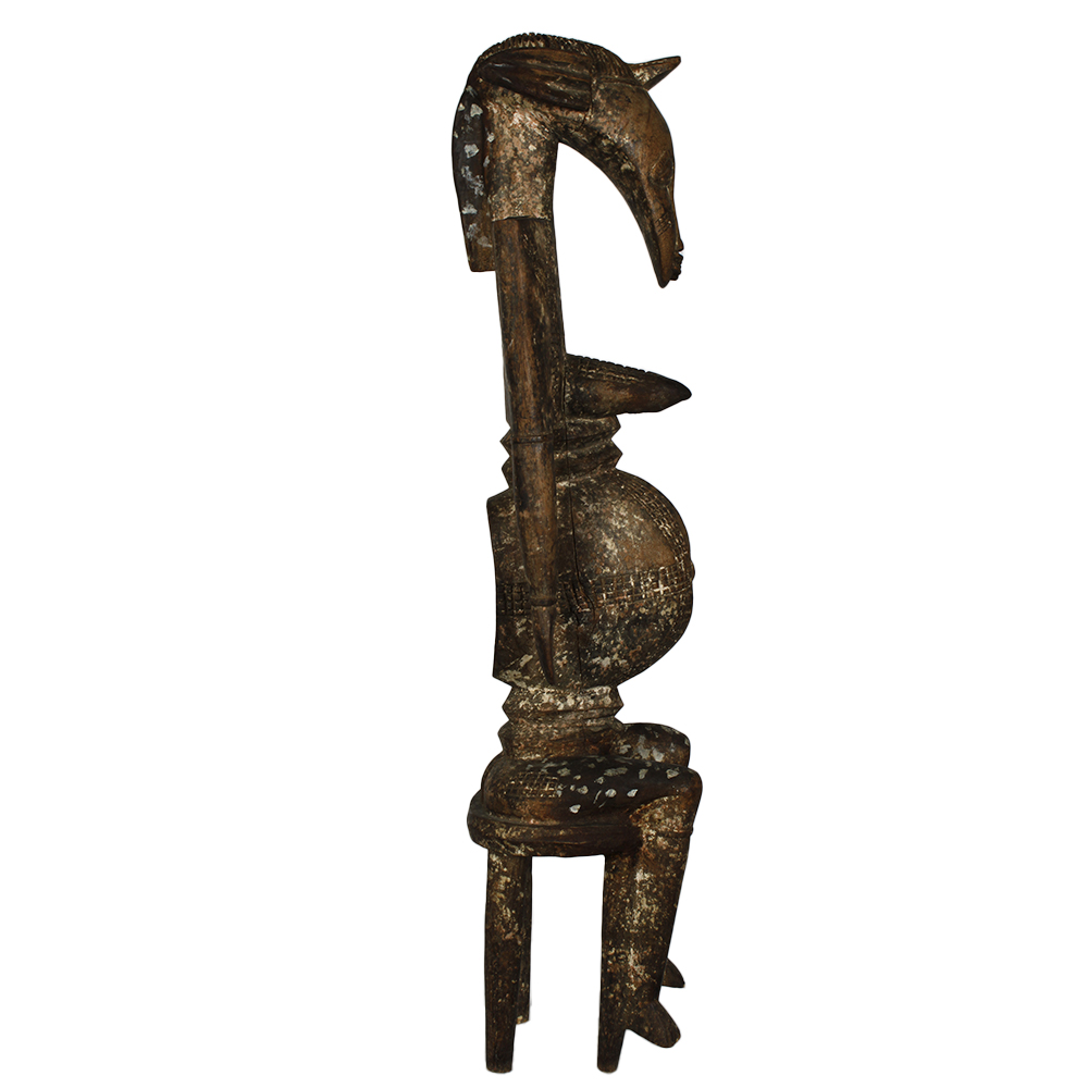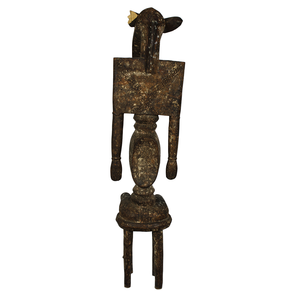 FIGURA RITUALE PORO della società segreta Poro etnia Senufo in legno policromo raffigurante la dea madre, capolavoro d'arte cubista, utilizzata per i riti funebri durante la notte. Costa D'Avorio h cm 78 x 17 x 20