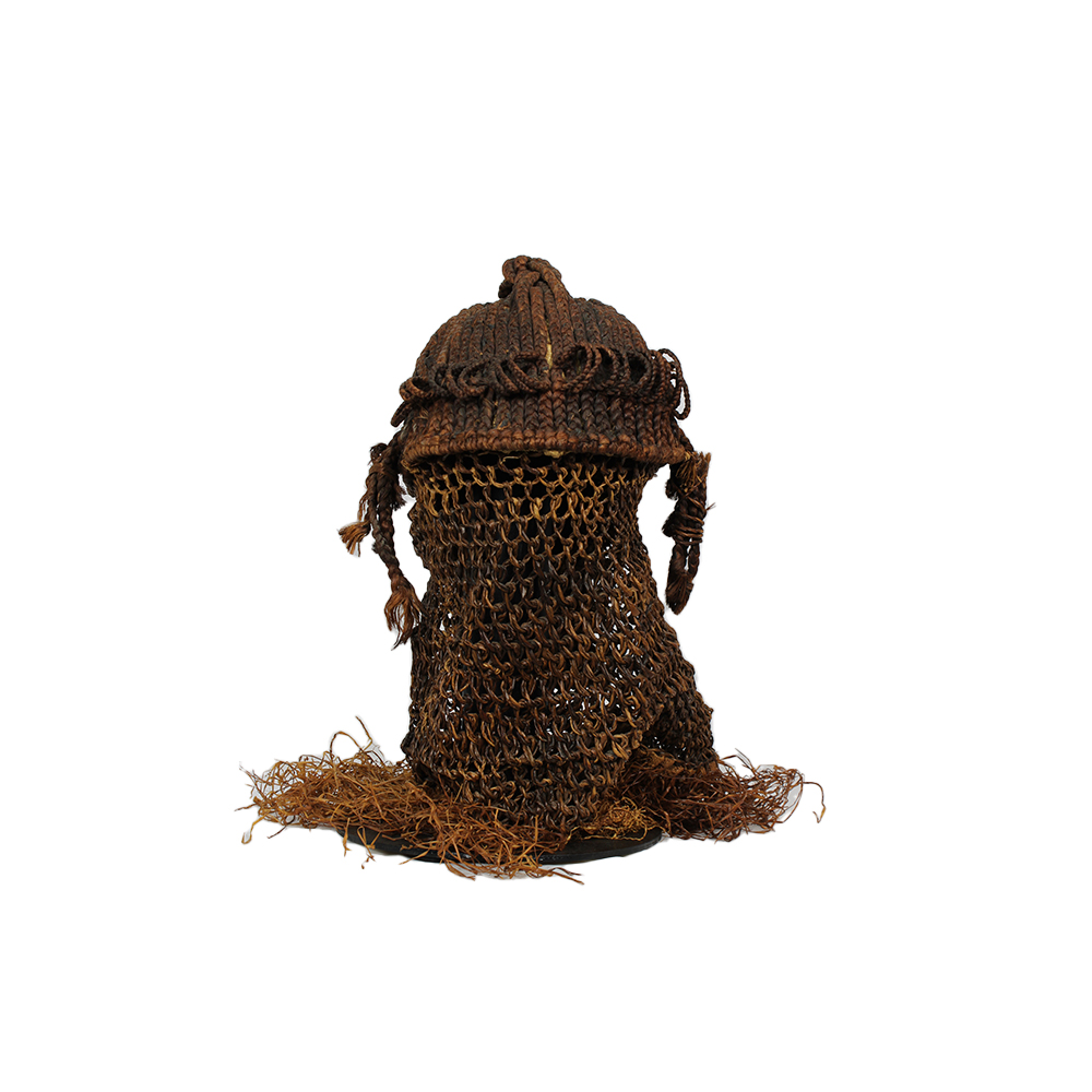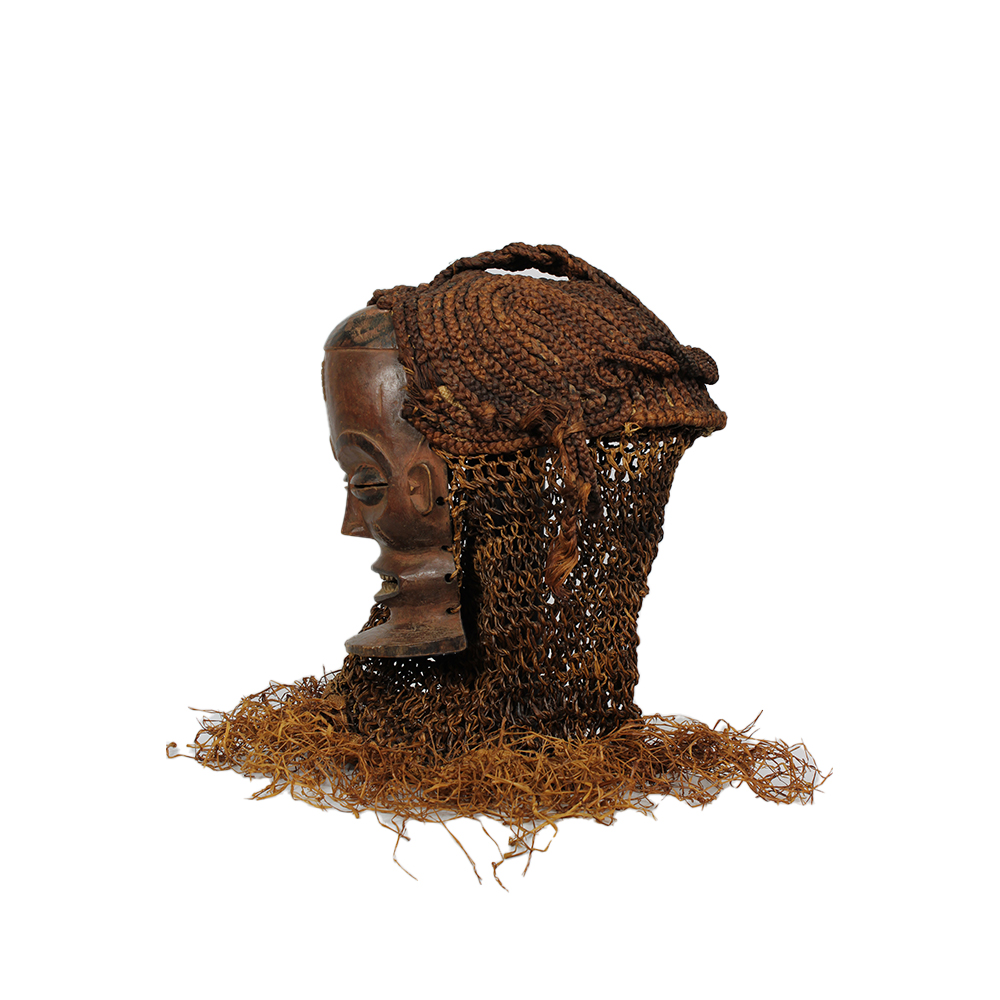 MASCHERA CIHONGO etnia Ba ciokwe in legno policromo e fibre vegetali. Maschera che raffigura uomo anziano con barba simbolo di saggezza e potere. Repubblica democratica del Congo h cm 31 x 20 x 23