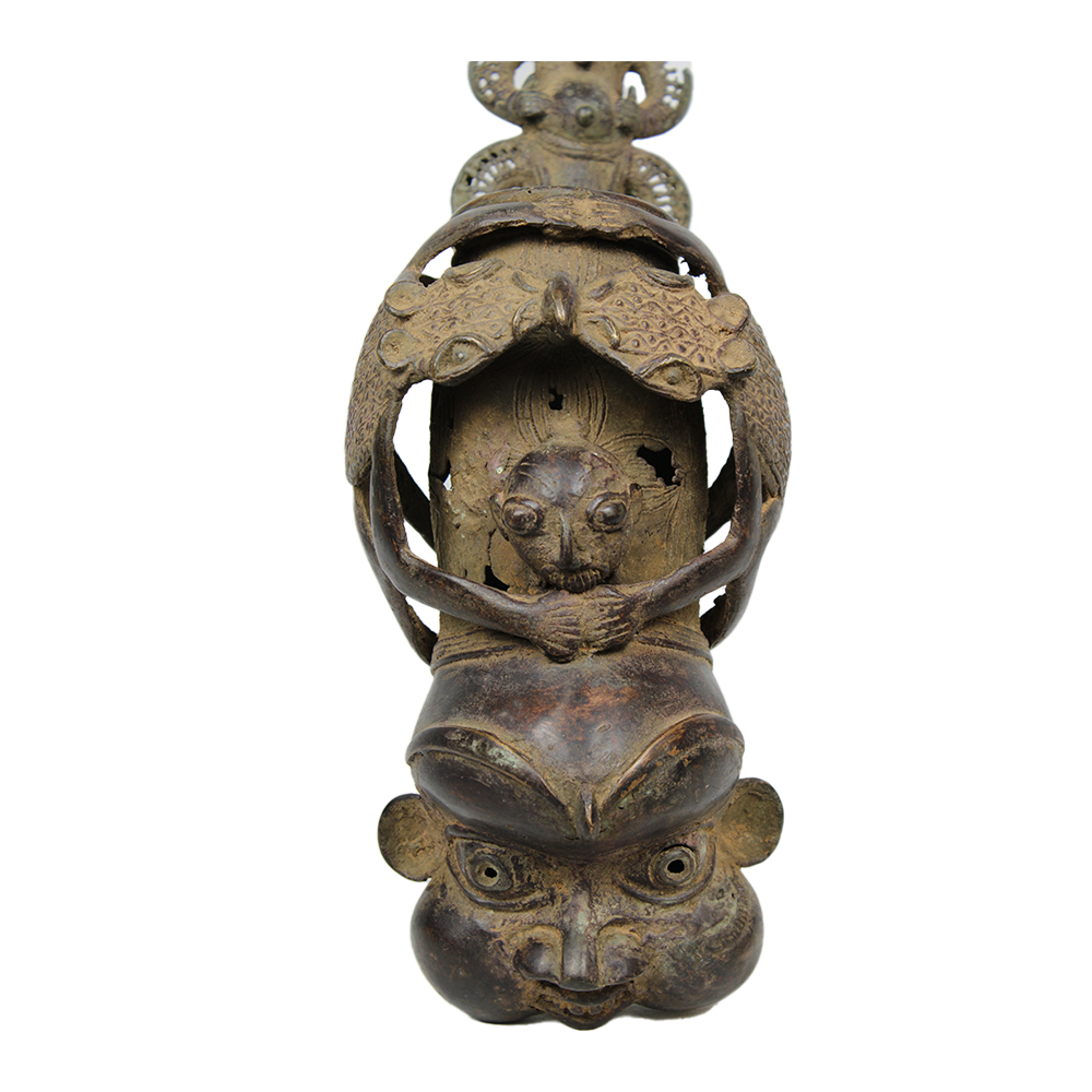 PIPA CERIMONIALE in bronzo con raffigurazione antropomorfa. Repubblica democratica del Congo h cm 85 x 15 x 23