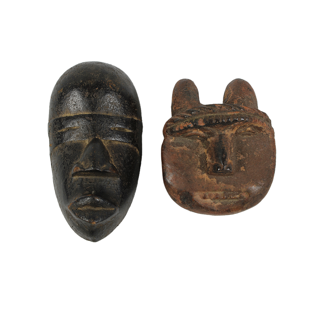 N.2 MASCHERINE PASSAPORTO IN PIETRA MA DEI TOMA utilizzate come riconoscimento personale durante le cerimonie. Guinea e Liberia h cm 13 x 6,5 - h cm 10 x 8