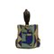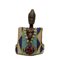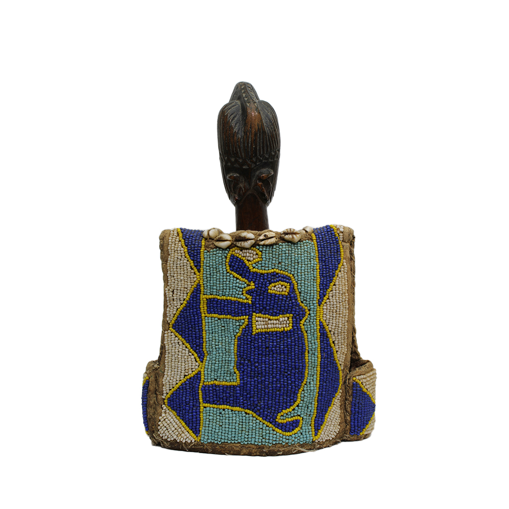 ABITO MINIATURA DEL DIO SHANGO etnia Yoruba in stoffa perline colorate e cauri con piccola scultura in legno e patina nera. La forma a doppia ascia dell'abito è per onorare il dio del tuono Shango. h cm 24 x 15 x 9