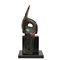 PULEGGIA DI TELAIO SENUFO in legno patina scura, la piccola scultura raffigura uno spirito tutelare dei tessitori. Costa D'avorio h cm 18 x 9
