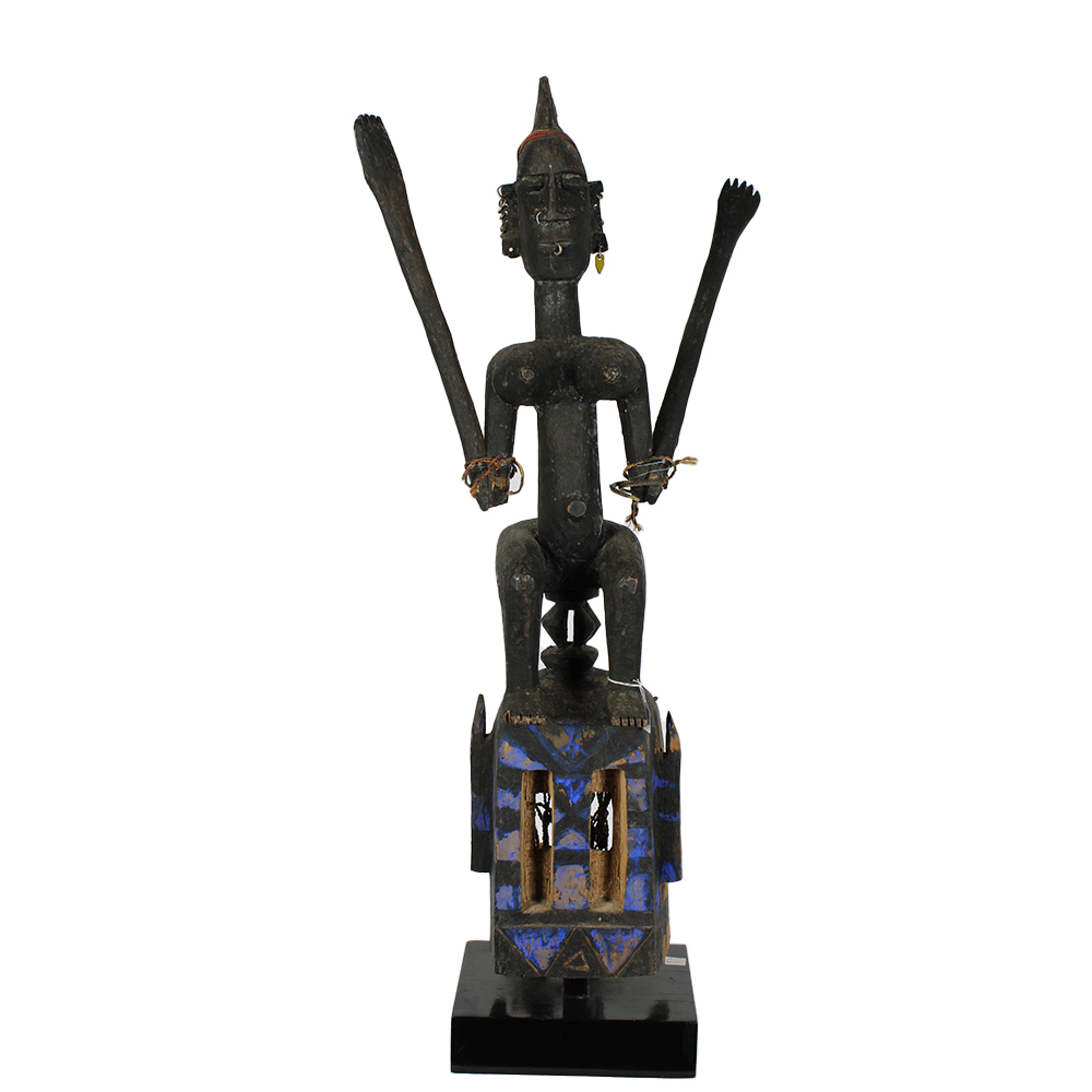 MASCHERA SETIMBE etnia Dogon in legno alluminio e perline di vetro. La donna rappresentata nella scultura sulla maschera è la donna yasigne, l'unica donna ammessa nella società delle maschere. Mali h cm 96 x 39 x 20