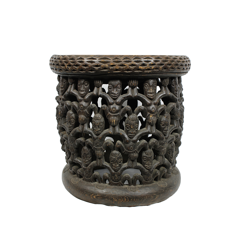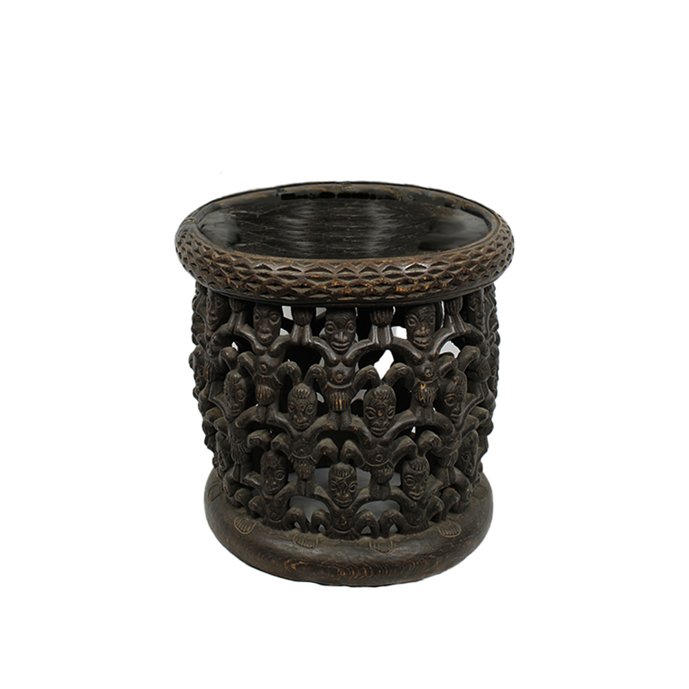 SEGGIO DI PRESTIGIO BAMUN in legno brunito, elaborato con un'importante opera scultorea, oggetto sul quale siede solo un personaggio di alto rango al fine di mostrare stabilità saggezza e comando. Camerun h cm 51 x Ø 52