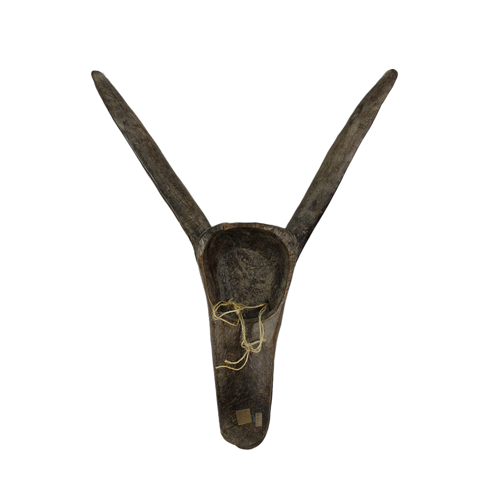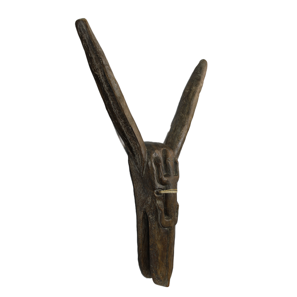 MASCHERA CASCO KONO etnia Bamana in legno a patina bruna, maschera appartenente alla società di iniziazione Kono utilizzata per propiziare la fertilità dei campi agricoli. La lucertola indica l'antenato animale dell'umanità e la riproduzione sessuale. Mali h cm 110 x 74 x 11