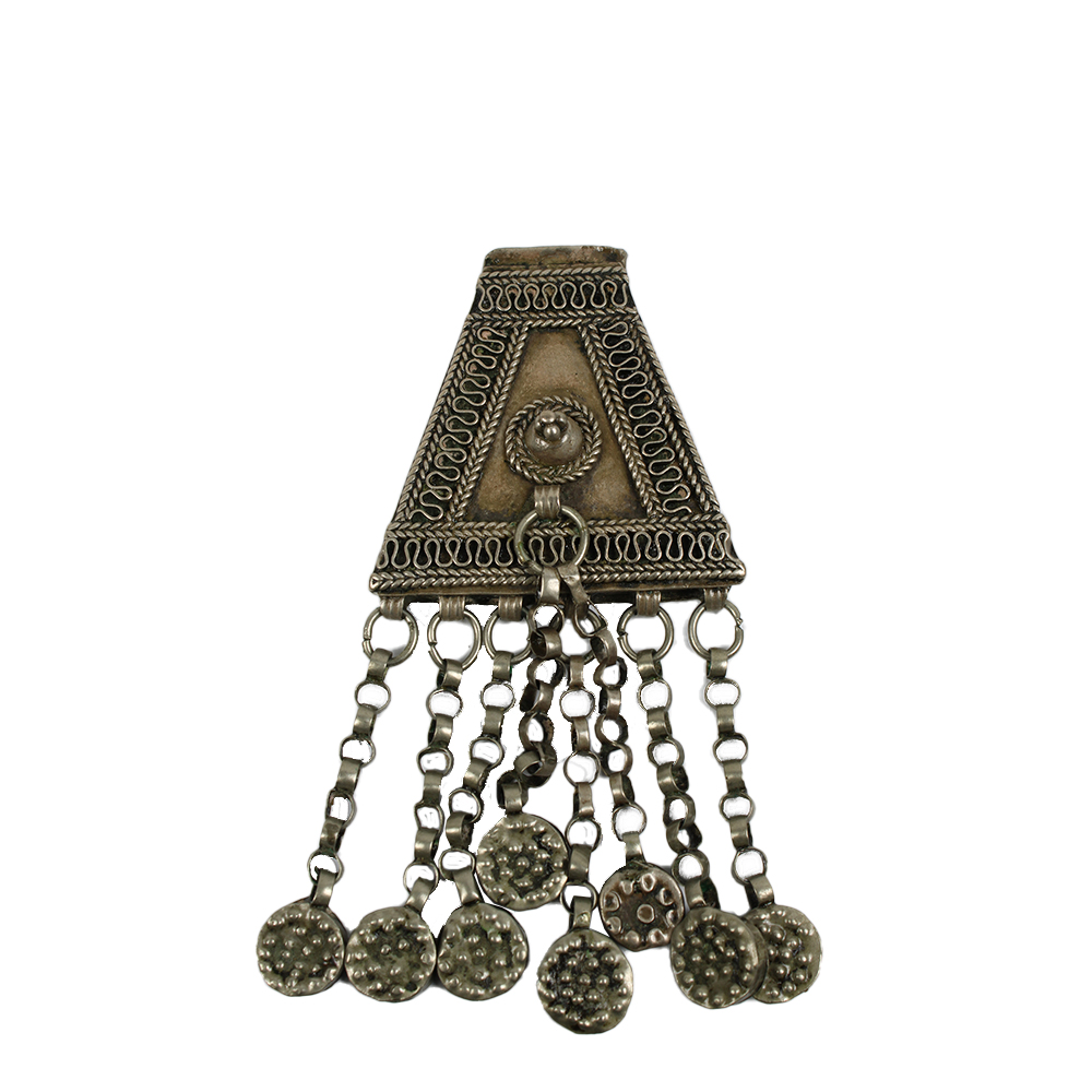 ORNAMENTO DA TESTA OROMO in metallo argentato Portato dalle donne Oromo ed Amhara per tenere le treccioline dei capelli. Etiopia h cm 10 x 5