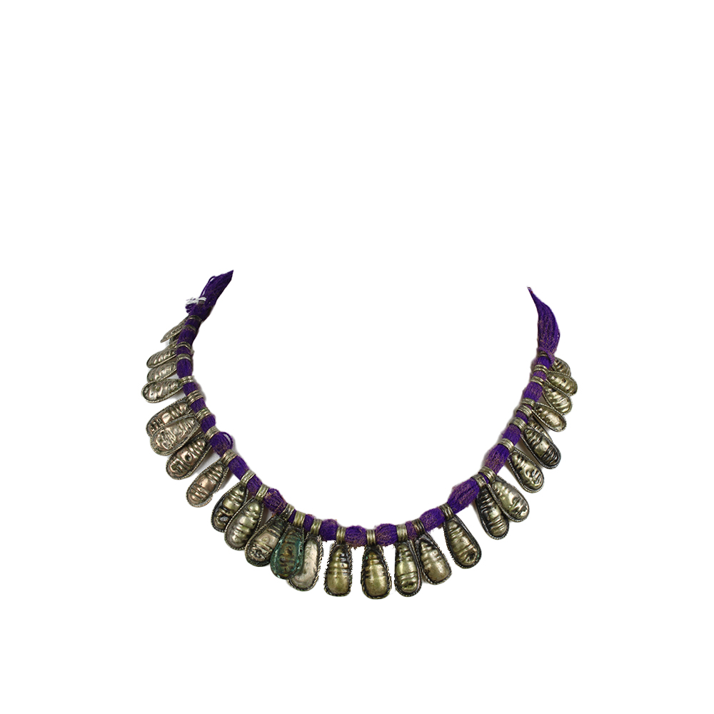 COLLANA OROMO in argento e fili di lana, simbolo di fertilità' tipica della provincia di Welo. Etiopia cm 32