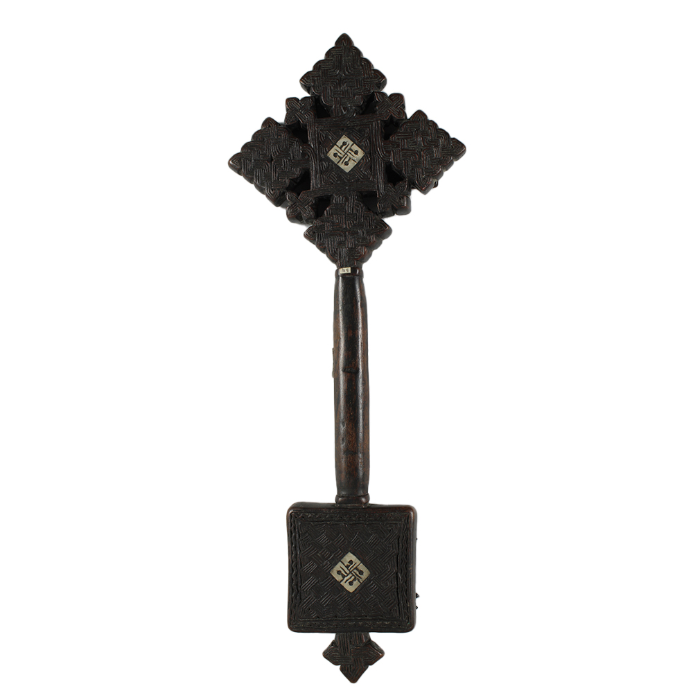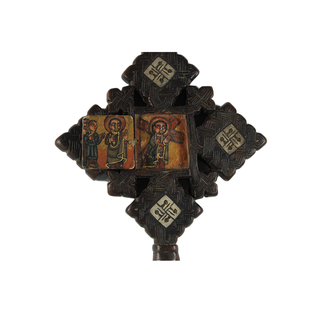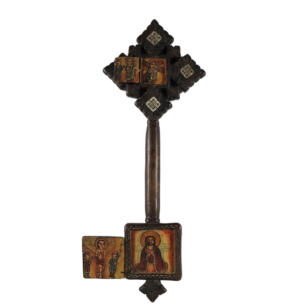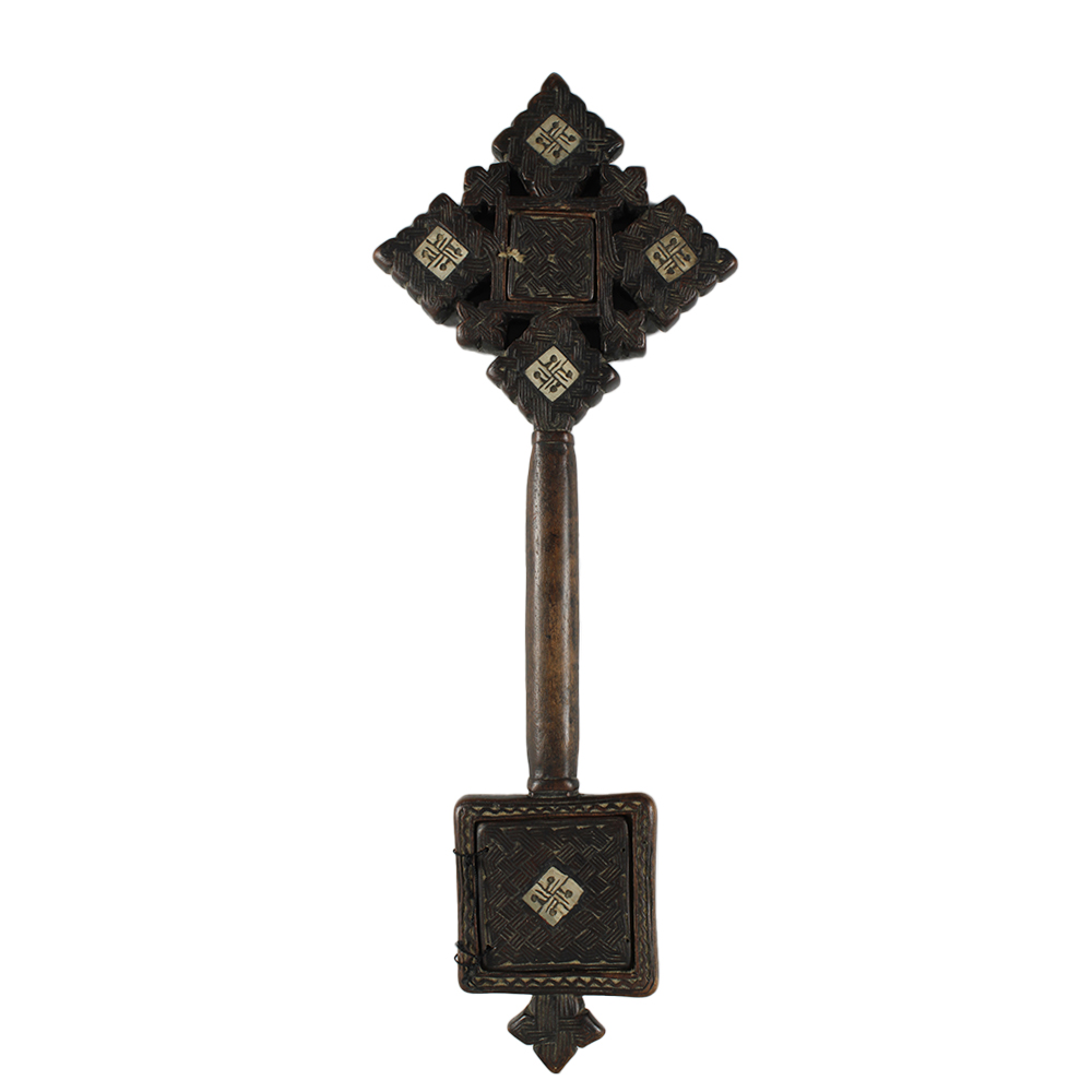 CROCE DA PROCESSIONE AMHARA in legno osso e pitture, utilizzata durante le processioni , le prime croci di questo tipo risalgono al IV sec. Etiopia h cm 45,5 x 17 x 2