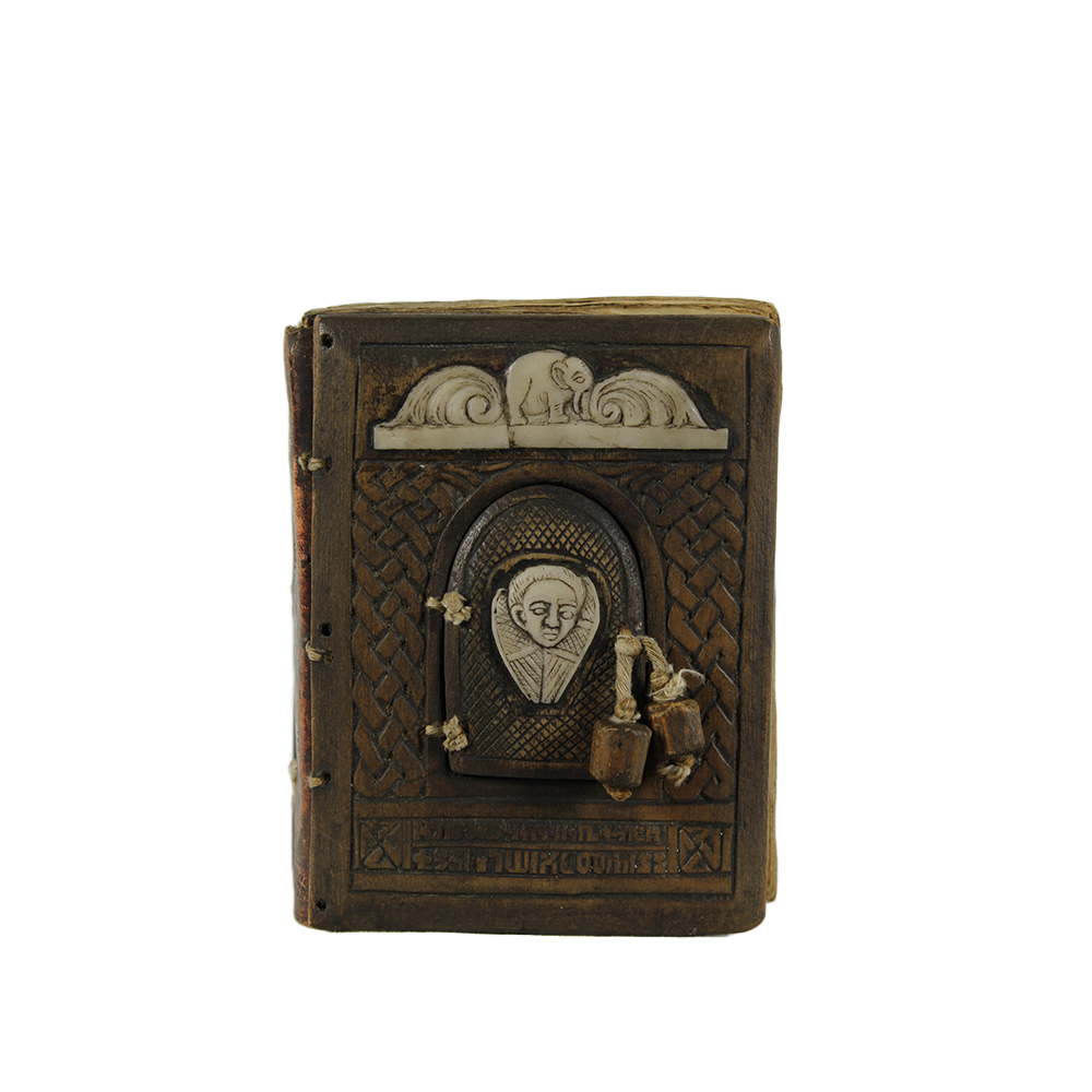 LIBRO DI PREGHIERE EVANGELICHE AMHARA in legno, osso, pergamene e pitture, gli emanuensi di questi libricini erano gli stessi sacerdoti che scrivevano in lingua Ge'ez antico linguaggio semitico. Il libretto è impreziosito da intarsi e pitture e sono di grande valore. Etiopia h cm 12 x 10 x 4