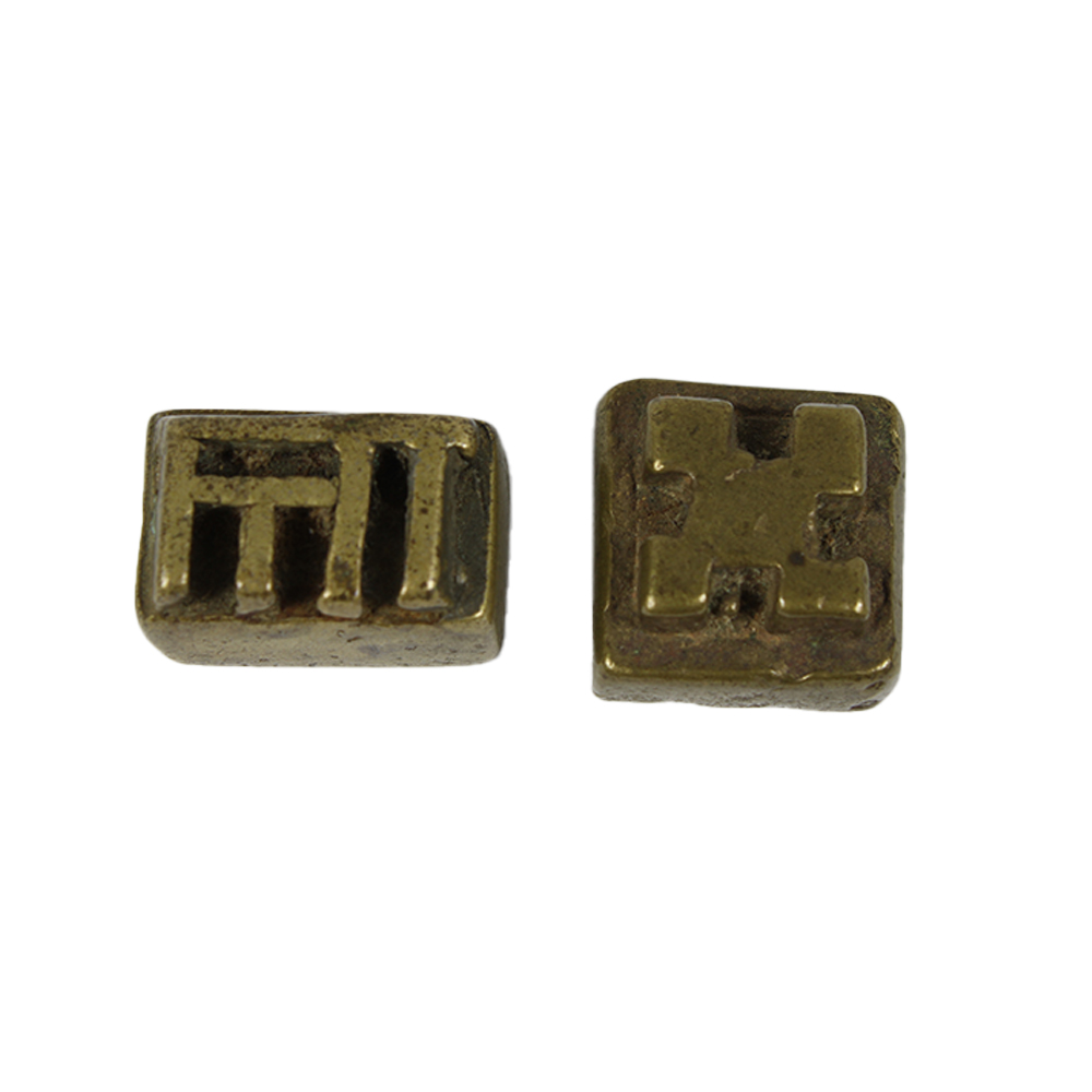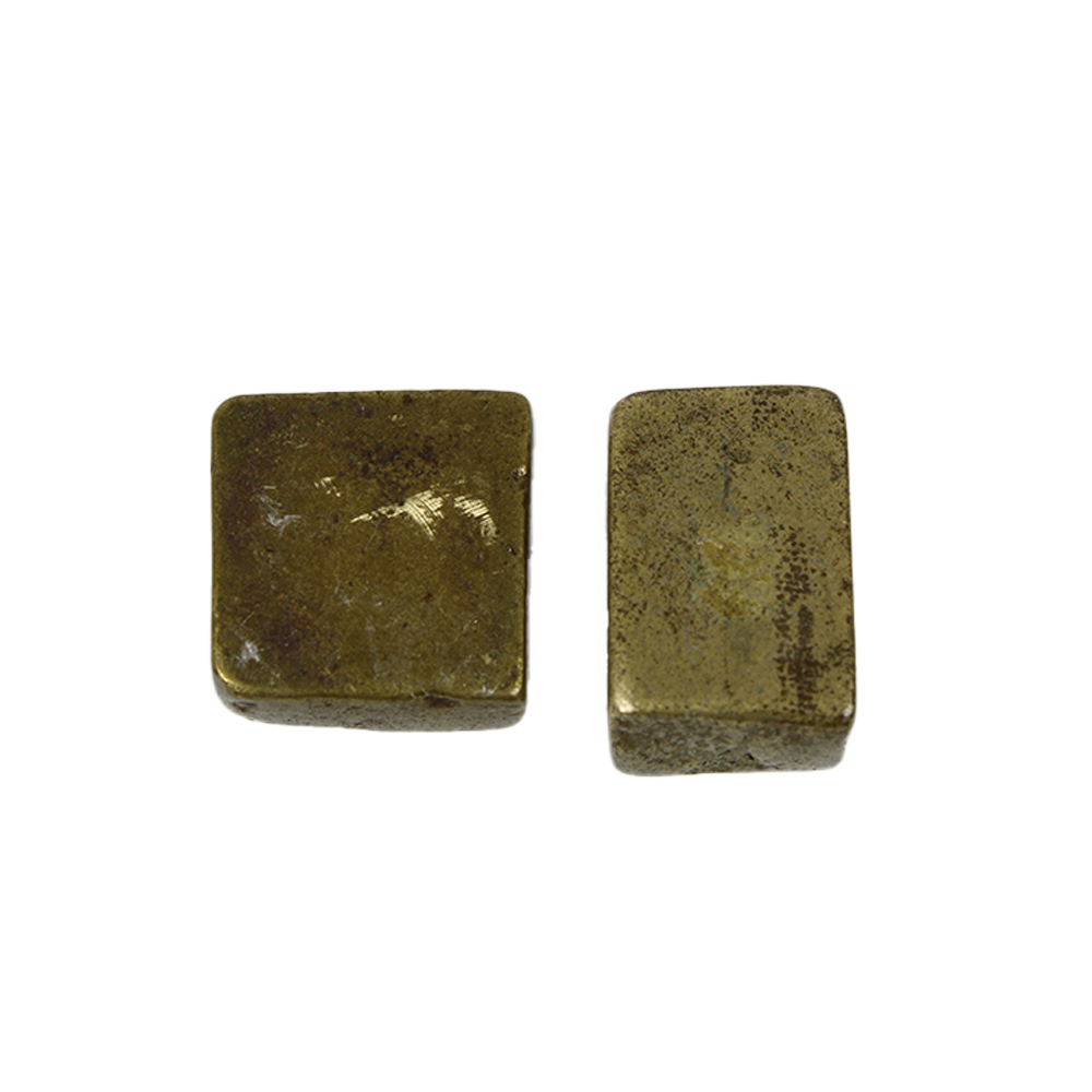 PESI PER POLVERE D'ORO ASHANTI in ottone con la tecnica della cera persa, di antica datazione in quanto raffigura figure geometriche a differenza dei più recenti che raffigurano animali. Ghana h cm 1 x 1,5