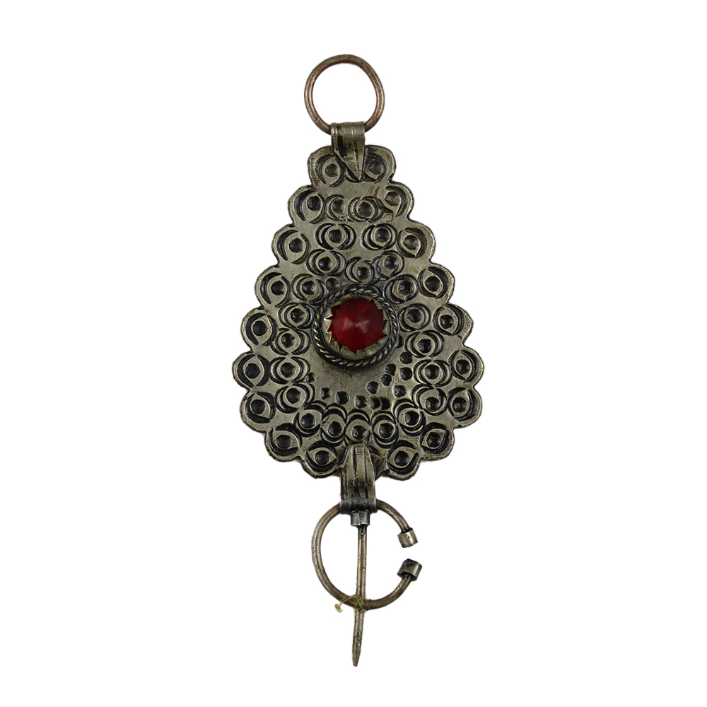 LOTTO DI 2 oggetti in metallo di cui un porta talismano e una forcina per capelli etnia berbera. Oggetti che mostrano l'abilità e la raffinatezza degli artigiani berberi. Marocco. h cm 10 - h cm 12