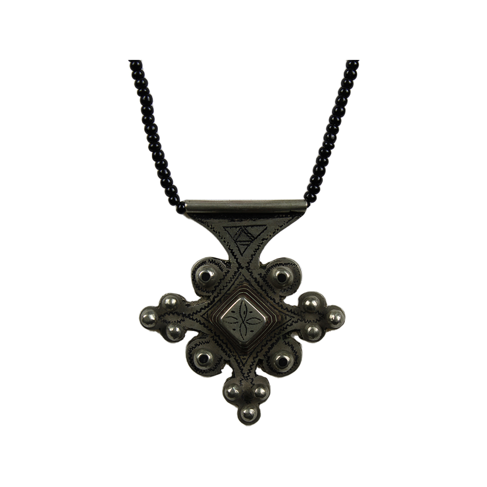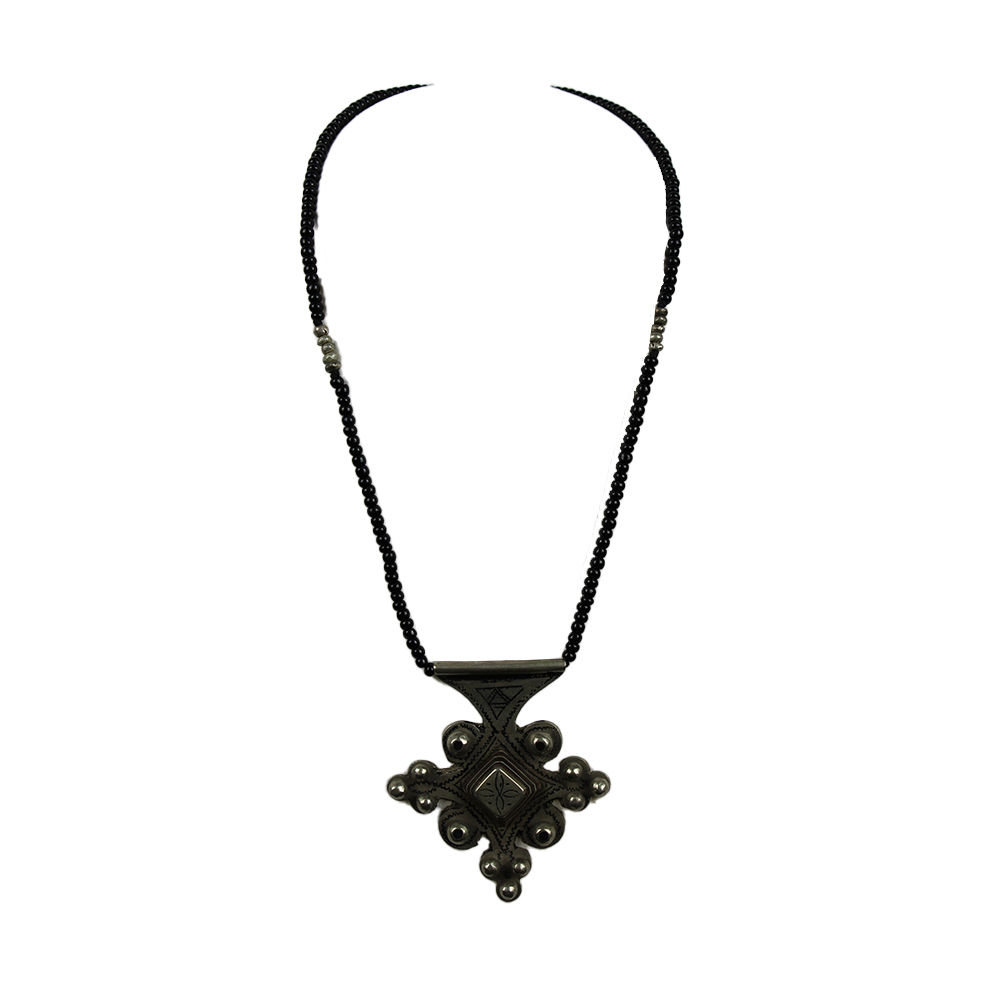 COLLANA ETNICA con cordoncino e fibbia tipica in metallo. Berberi Africa Occidentale h cm 29 x 6,5