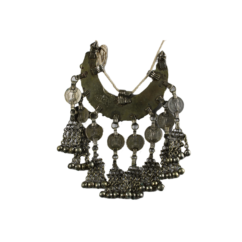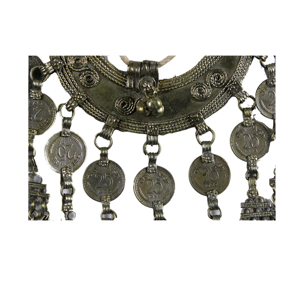 PETTORALE BANJARI in metallo argentato e monete. India meridionale h cm 15 x 15
