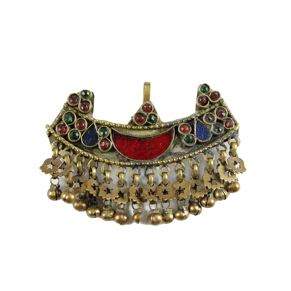 CIONDOLO KOCHI in metallo e vetri colorati. Afganistan h cm 5 x 8