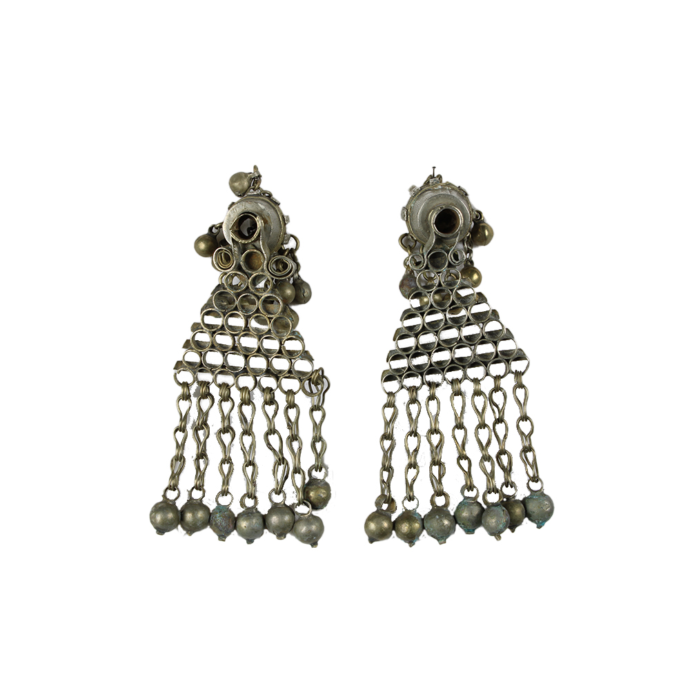 ORNAMENTI DA TESTA BANJARI in metallo argentato. India meridionale cm 10
