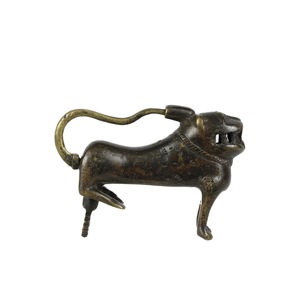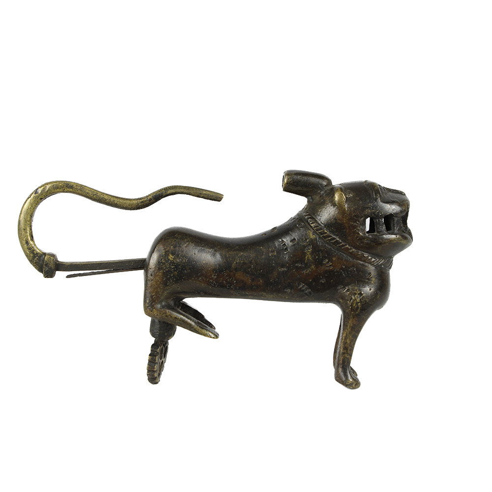 LUCCHETTO a figura di animale facocero, in bronzo. Cina h cm 7 x 10 x 2,5