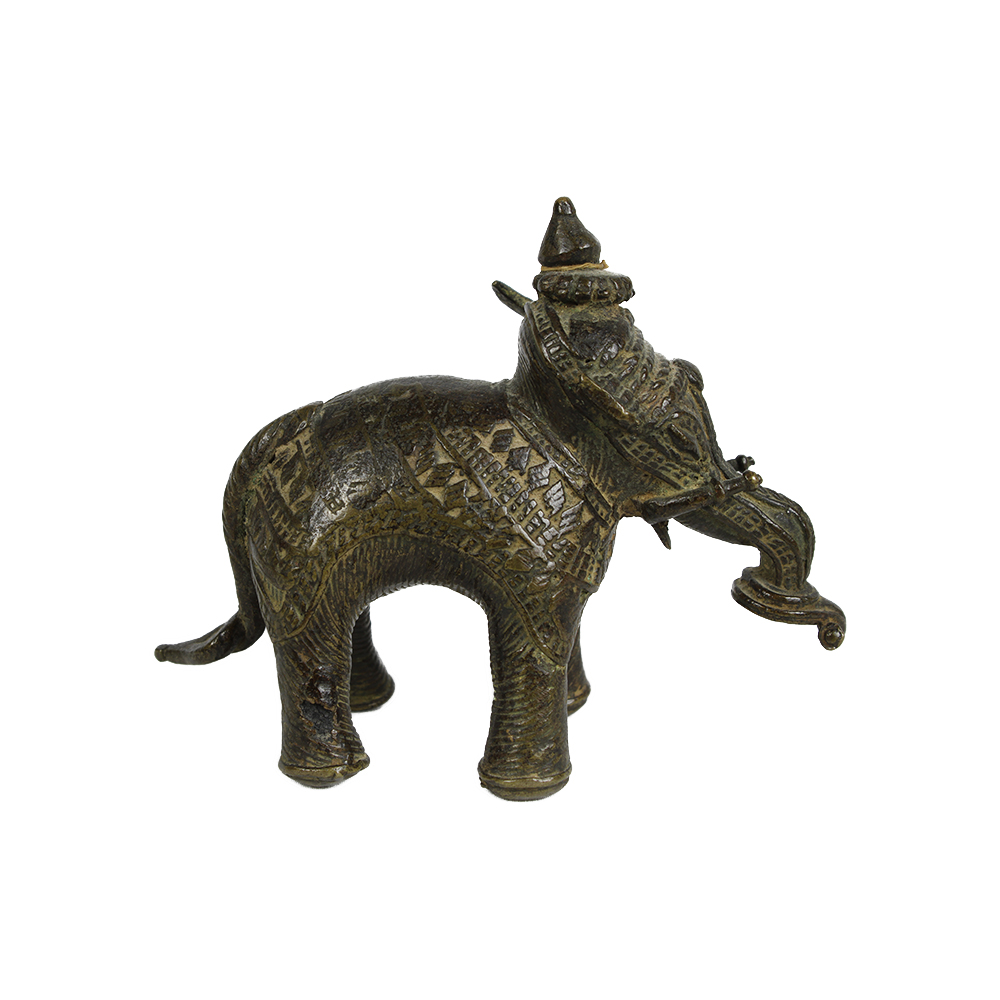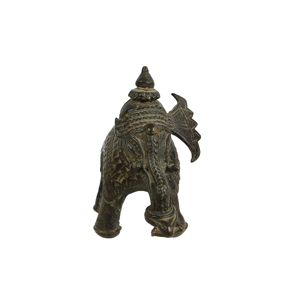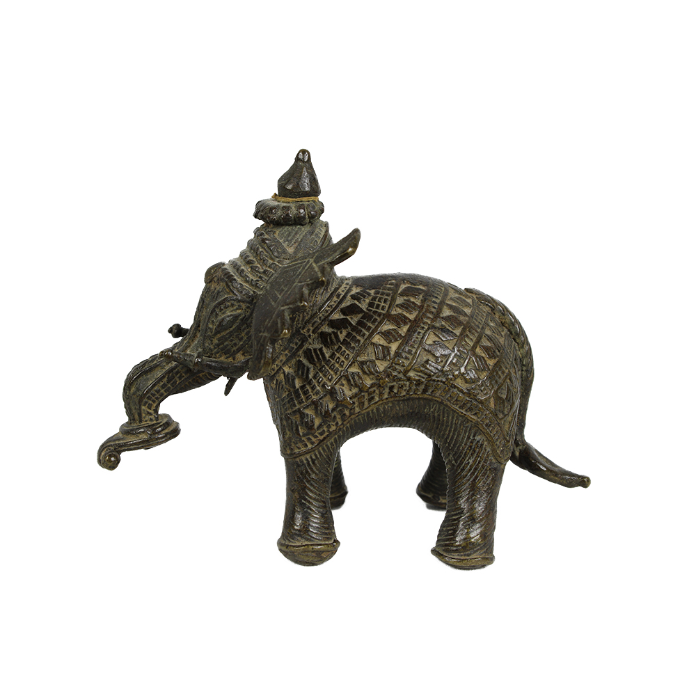 STATUETTA DI ELEFANTE in bronzo. Orecchio mancante. Bengala occidentale India h cm 10 x 11,5 x 5,5