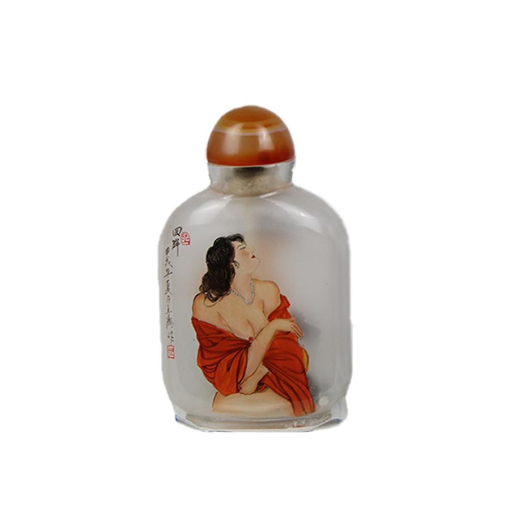 BOTTIGLIETTA PORTA PROFUMI in cristallo dipinto dall'interno raffigurante figure femminili. Cina h cm 8 x 5