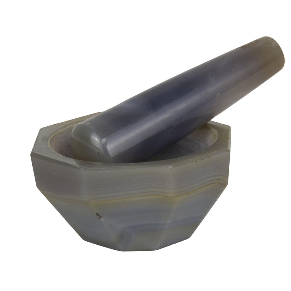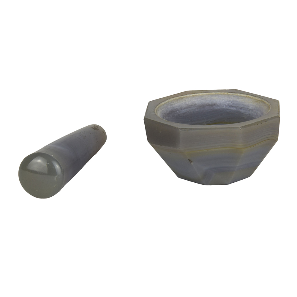 MORTAIO CON PESTELLO in agata naturale manifattura orientale primi XX secolo h cm 4,5 x 8,5