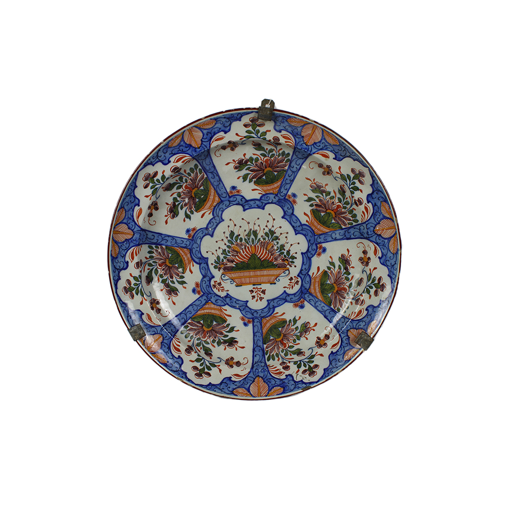 PIATTO in porcellana policroma De Griieksche A Dextra di Delft. Olanda Xx sec cm Ø 40