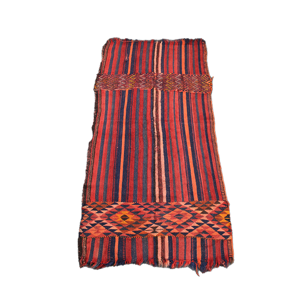 TAPPETO fondo rosso con motivi geometrici in lana. Popolazioni berbere h cm 186 x 90