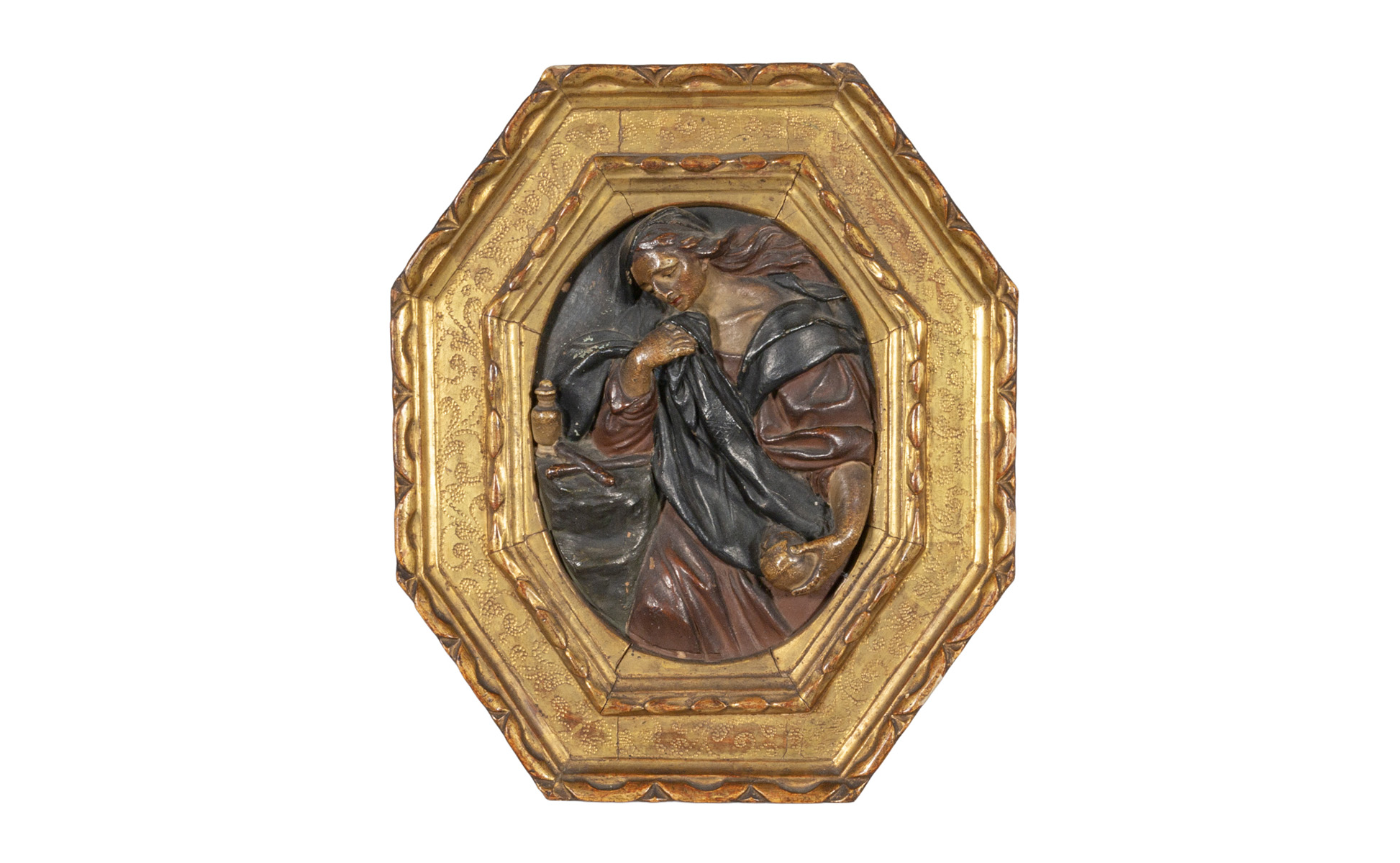 Maddalena altorilievo in terracotta policroma Firenze sec.XVI cornice coeva