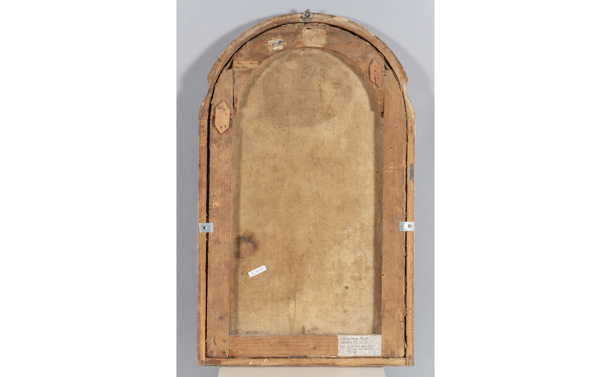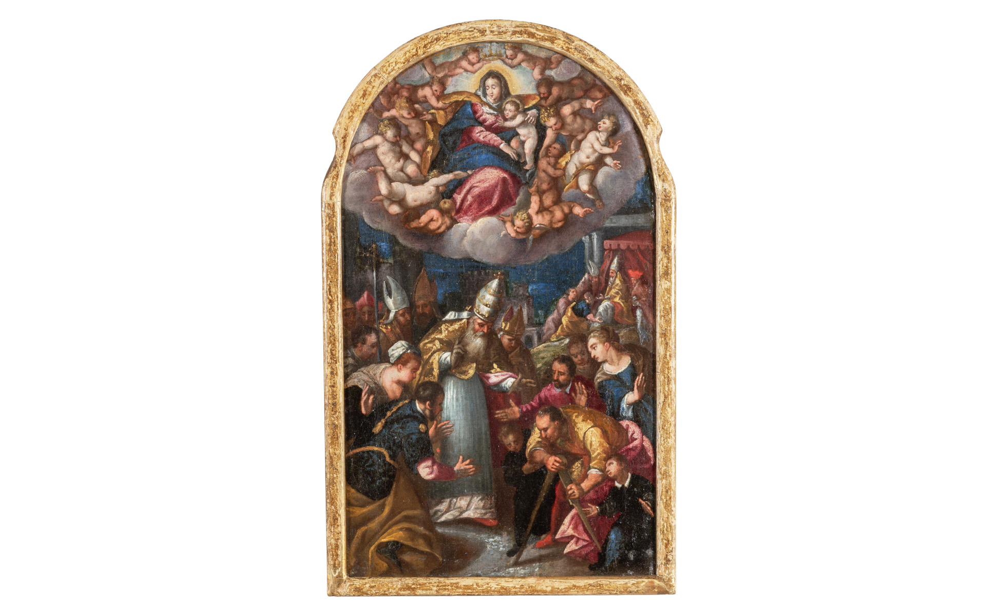 Scuola veneta sec.XVII 'Il miracolo della Madonna della neve' olio su tela centinata in alto