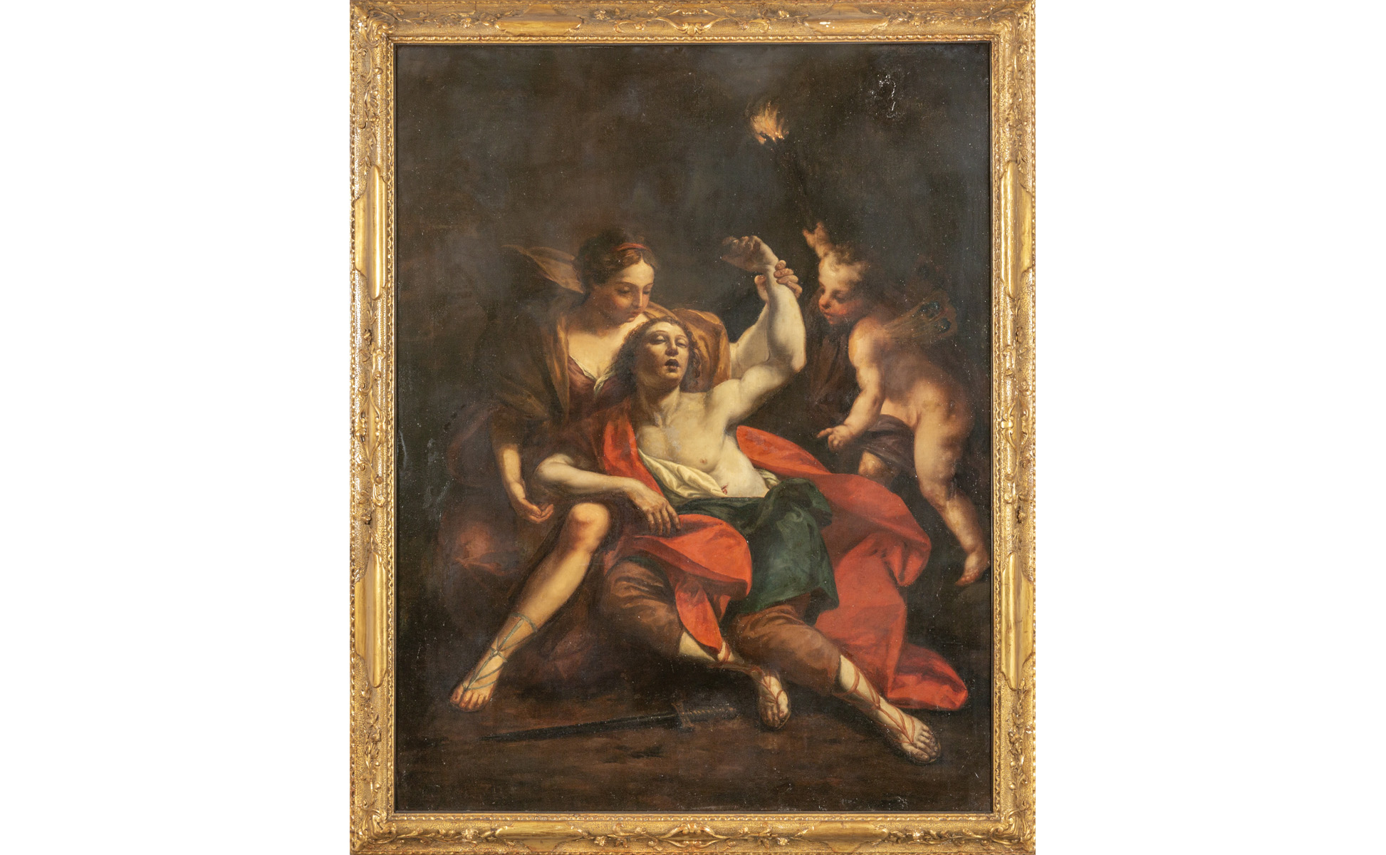 'Venere e Adone' olio cornice in legno intagliato e dorato