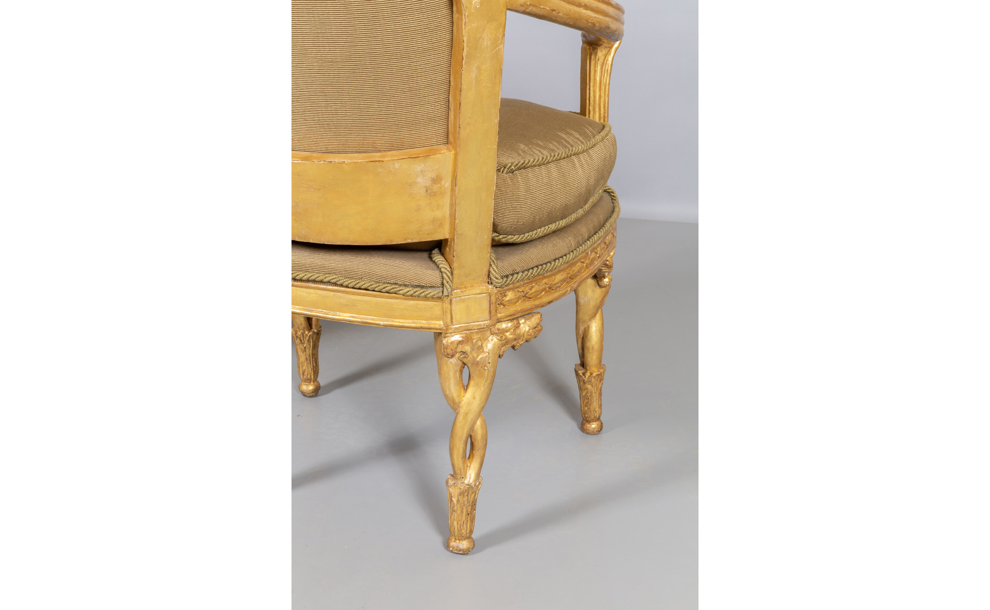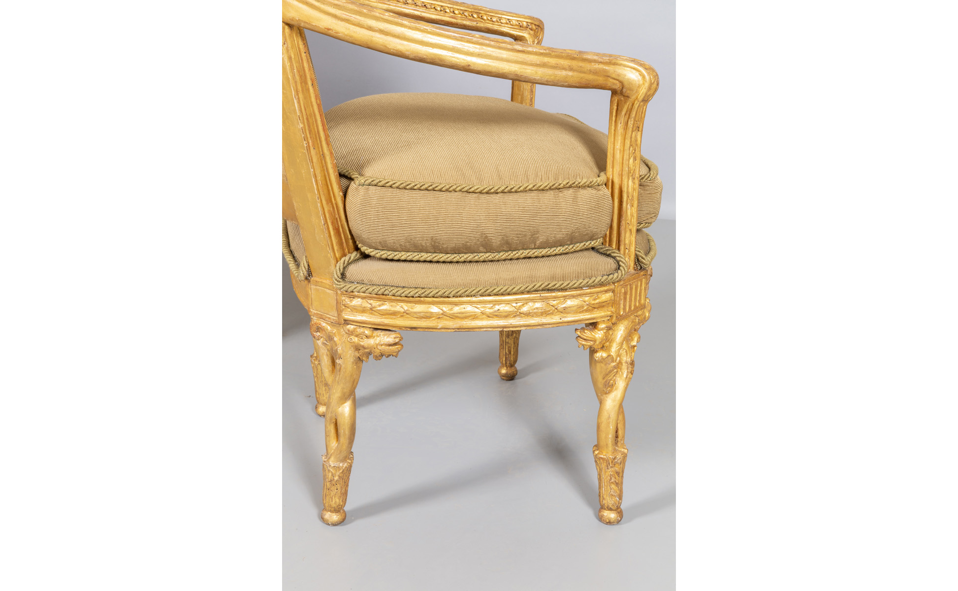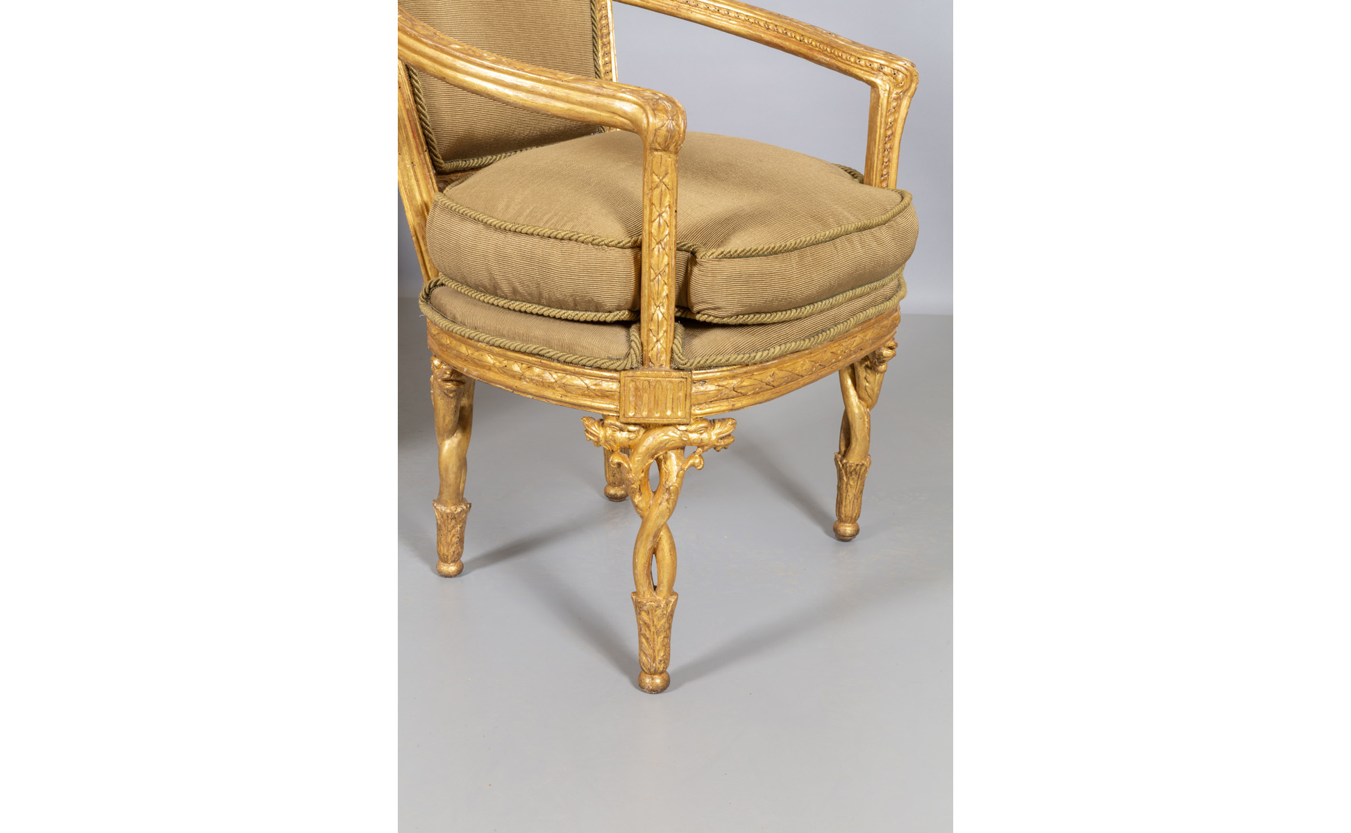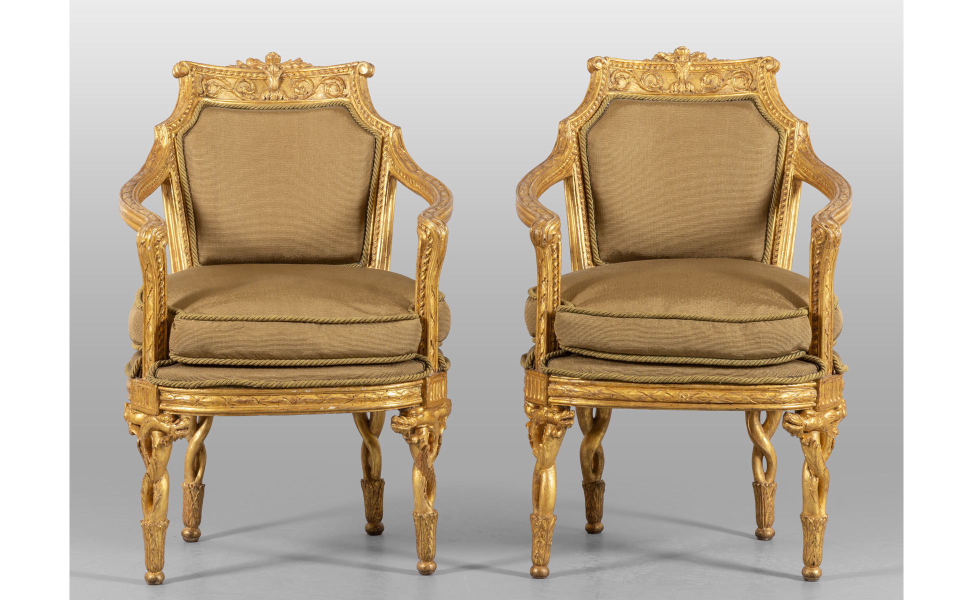 Coppia di poltrone Luigi XVI in legno finemente intagliato e dorato gambe a forma di draghi attorcigliati Genova II metà sec.XVIII