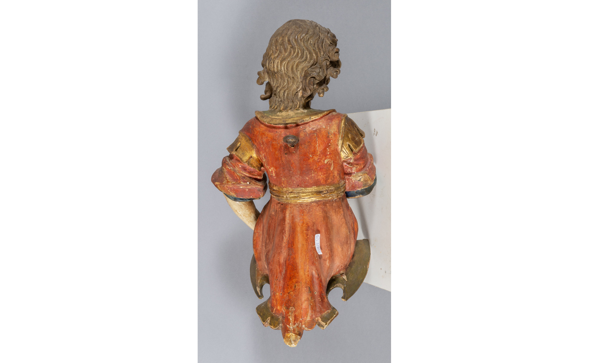 Giovane portastendardo scultura in legno intagliato e laccato Italia Settentrionale sec.XVII