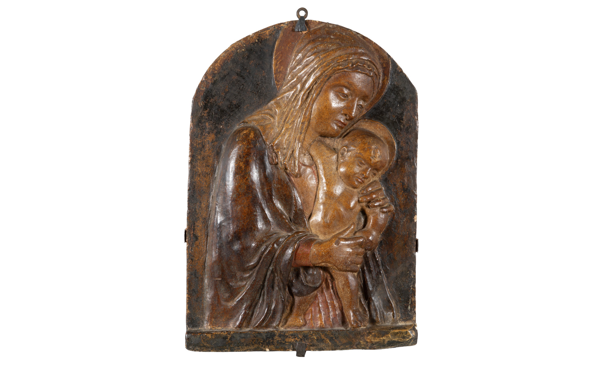 Madonna con Bambino pannello centinato in terracotta policroma Centro Italia sec.XVI