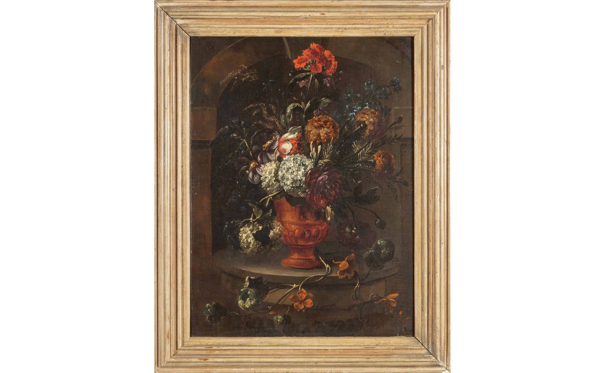 Scuola fiamminga inzi sec.XVIII 'Vaso di fiori in una nicchia' olio