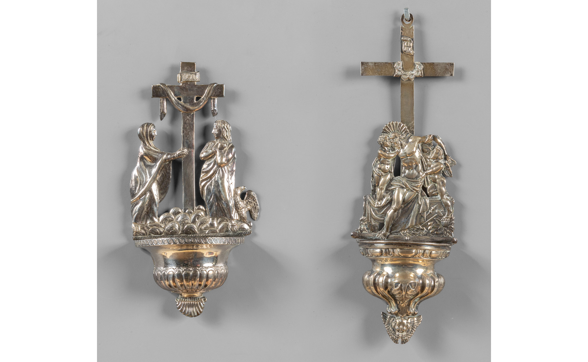Due acquasantiere in argento raffiguranti La Deposizione sec.XIX