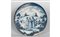 Piatto in ceramica decorazione con tre figure in blu su fondo bianco marca Lanterna Savona sec.XVIII