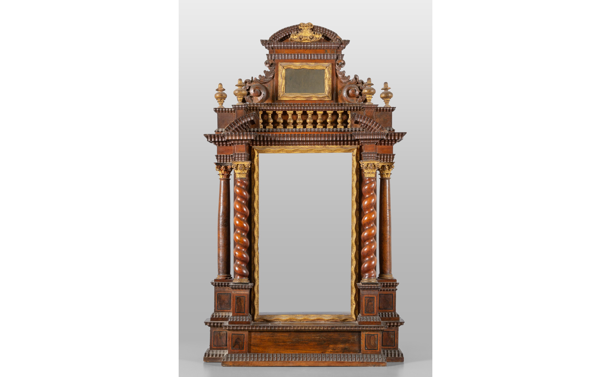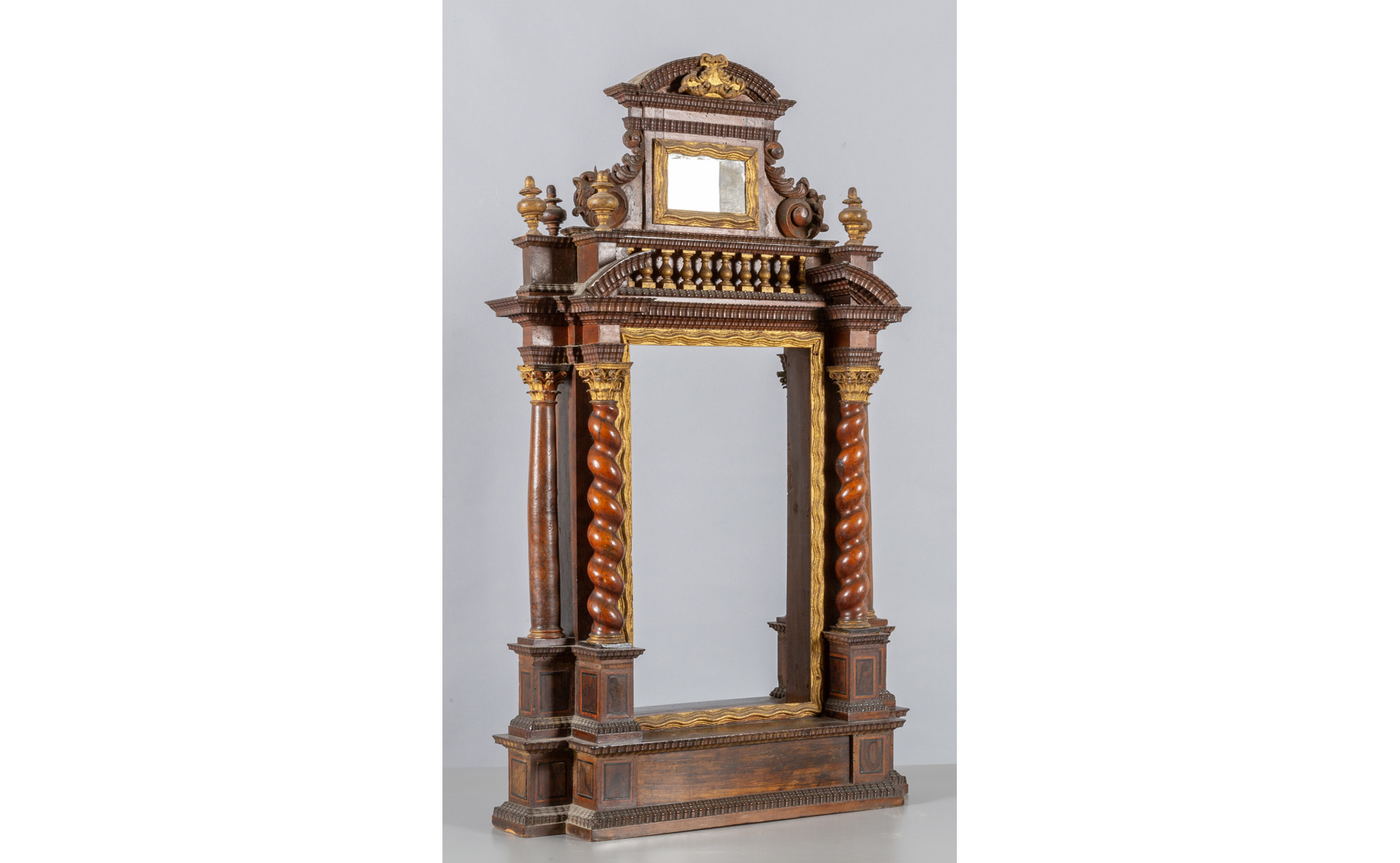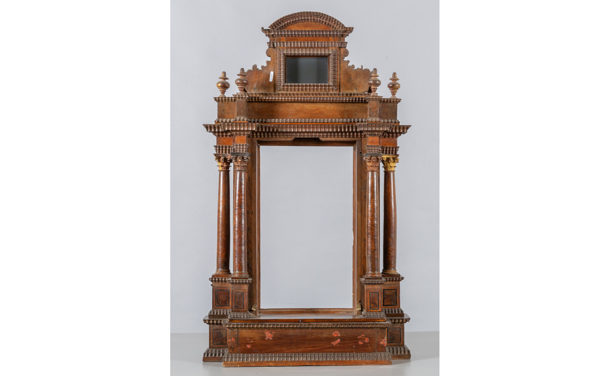 Edicola da centro barocca con colonne tortili e lisce capitelli dorati e profili guillochè Italia Centrale sec.XVII