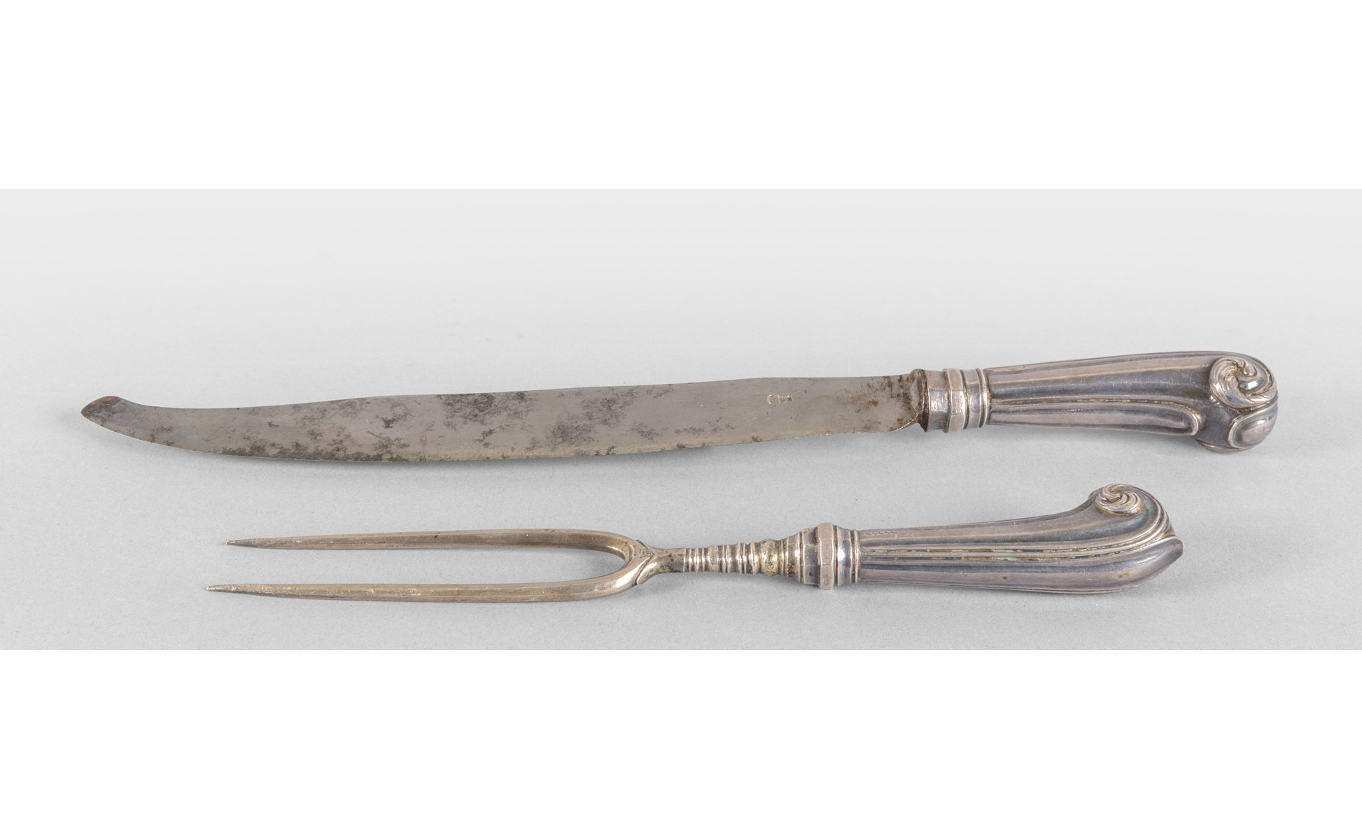 Coltello e forchettone da arrosto in argento Genova punzone della Torretta anno'76