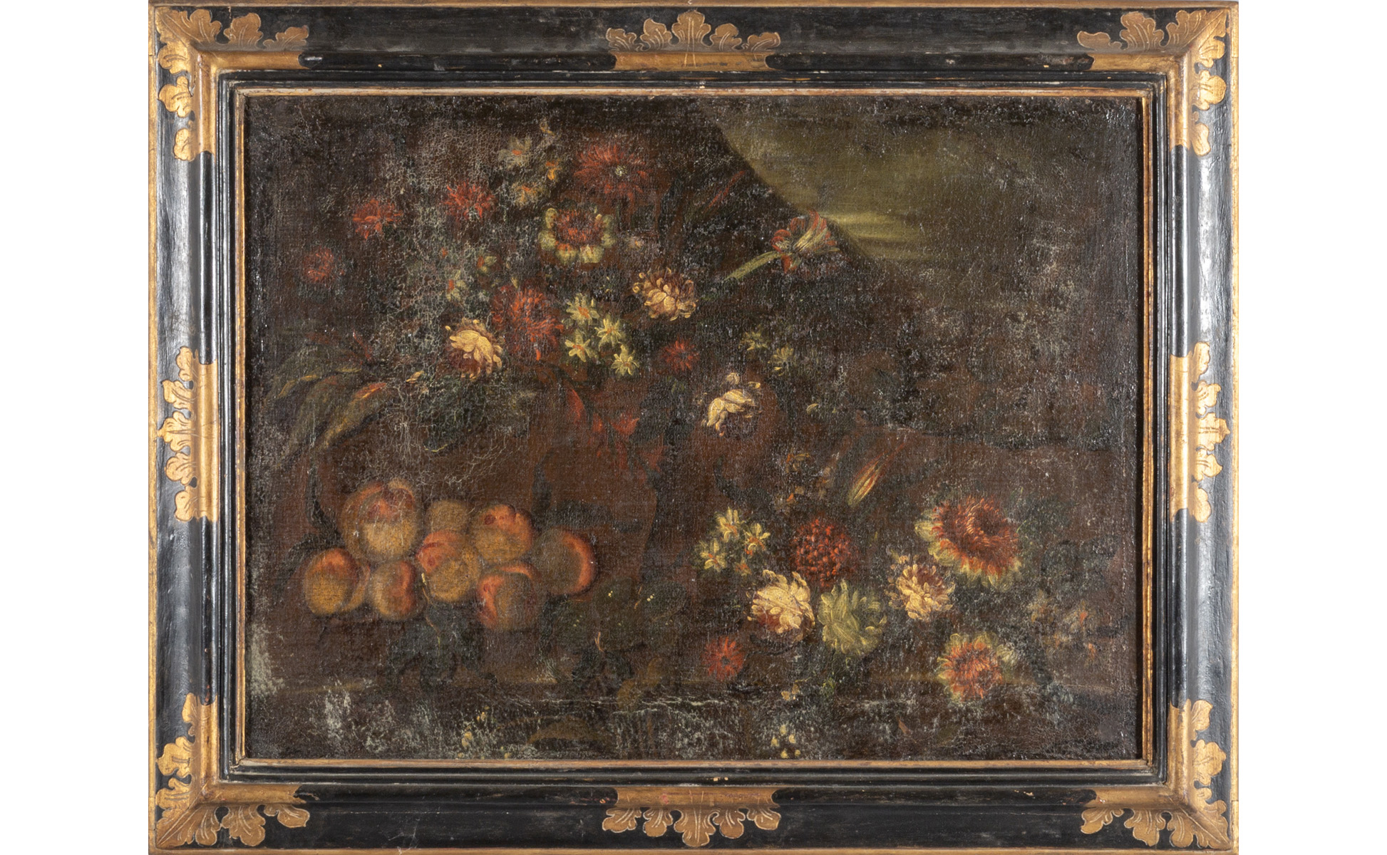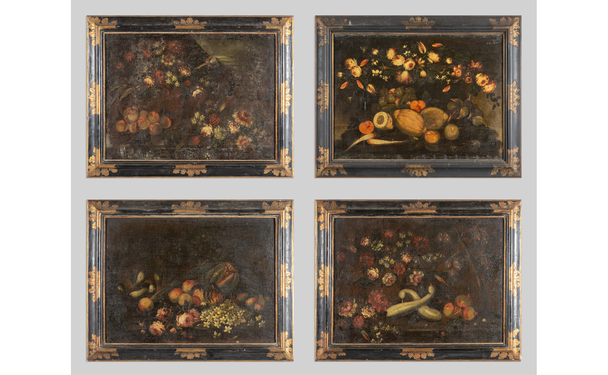 Scuola lombarda sec.XVII 'Nature morte di fiori e frutta' quattro olii