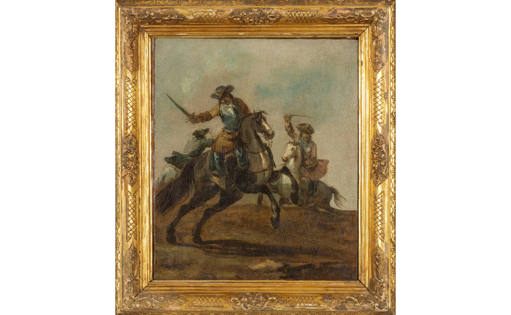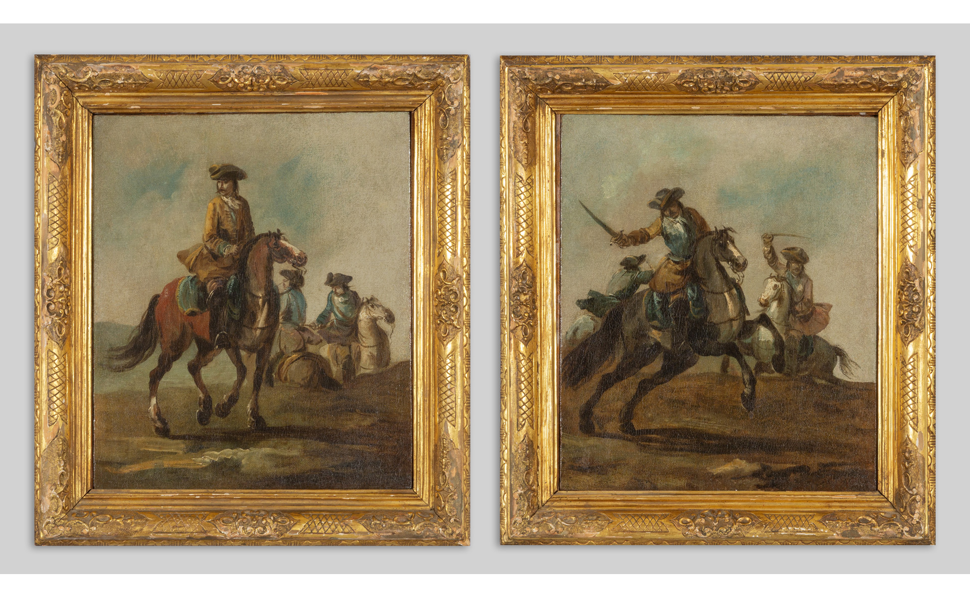 Scuola veneta I metà sec.XVII 'Cavalieri' coppia di olii