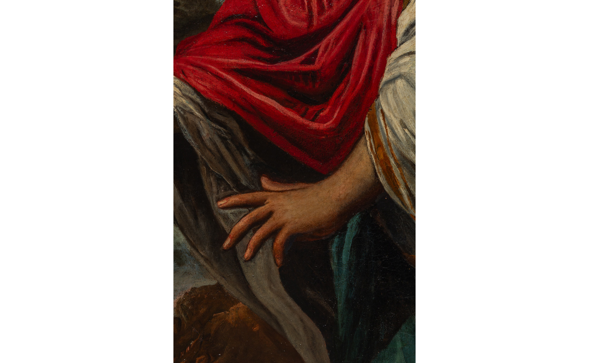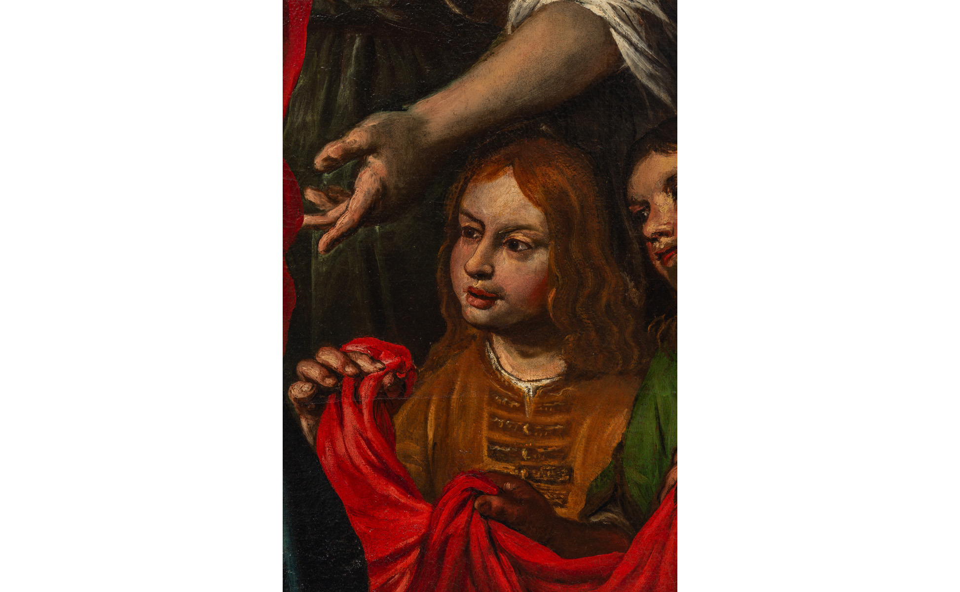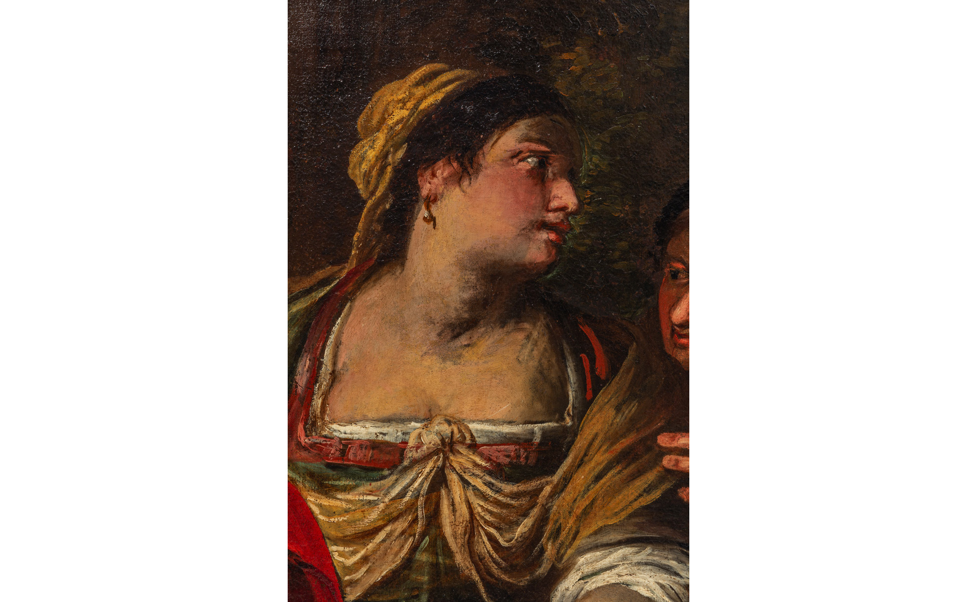 I colori ricchi e le pieghe elaborate degli abiti esaltano il movimento e la plasticità delle figure in perfetta sintonia con il gusto baroco.