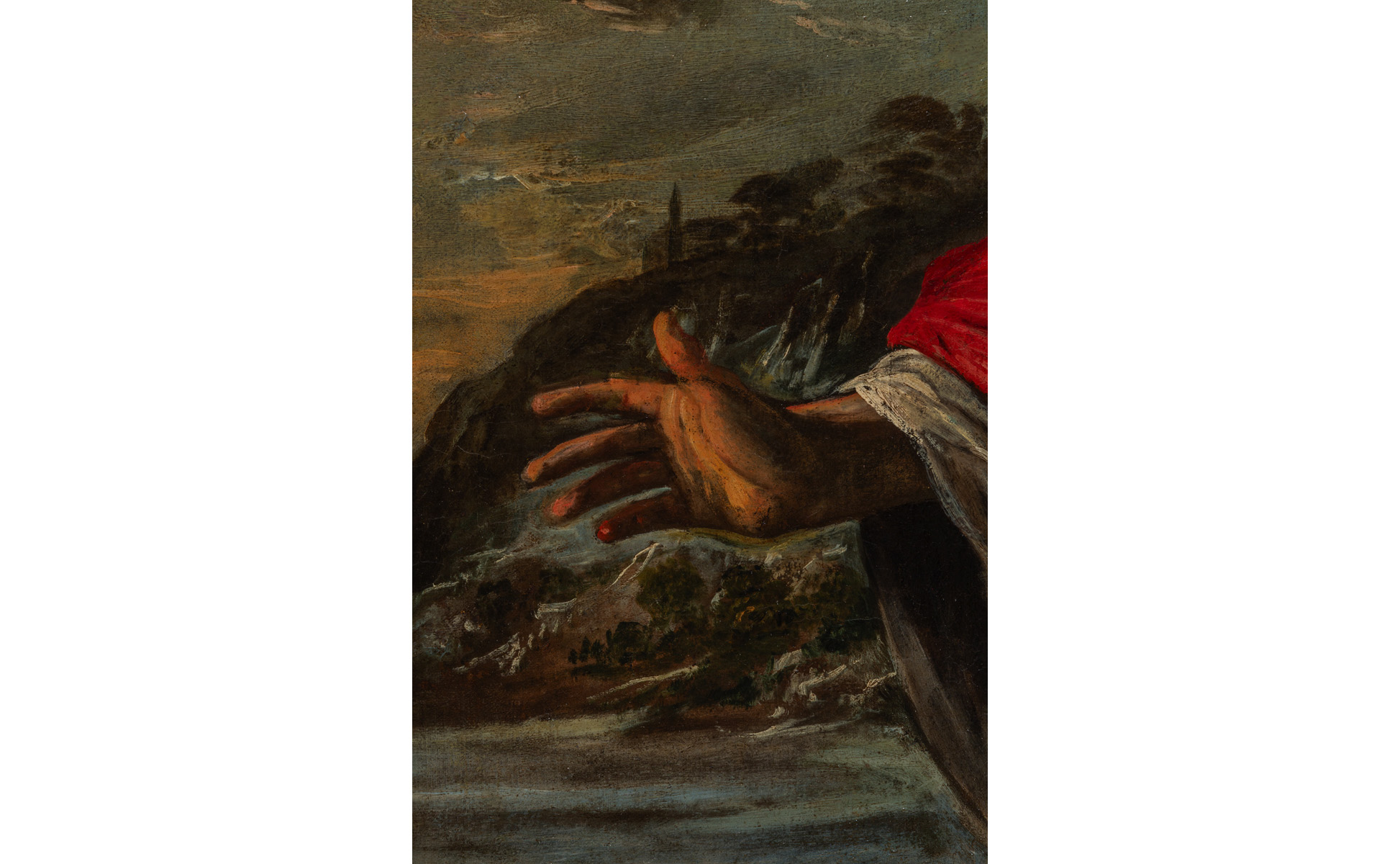 Giovanni Battista Carlone fu un pittore barocco genovese di grande rilievo formatosi in una famiglia di artisti. il padre Taddeo e il fratello maggiore Giovanni furono entrambi scultori e pittori. La sua carriera si sviluppò tra Genova Roma e la Spagna dove fu influenzato dalla pittura cortonesca e dal naturalismo caravaggesco. Il suo stile si distingue per il dinamismo delle scene la ricchezza cromatica e la capacità di rendere la teatralità del racconto sacro.