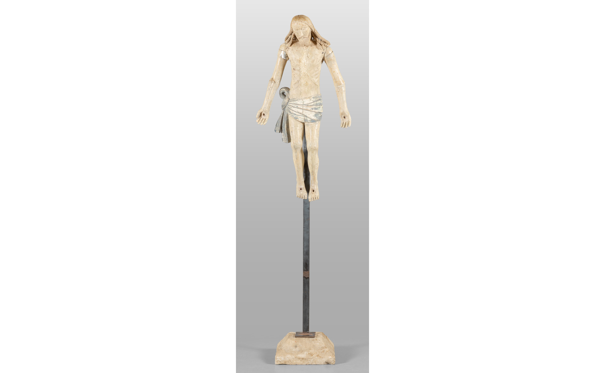 Antico Cristo in legno laccato con arti snodabili Toscana sec.XV/XVI