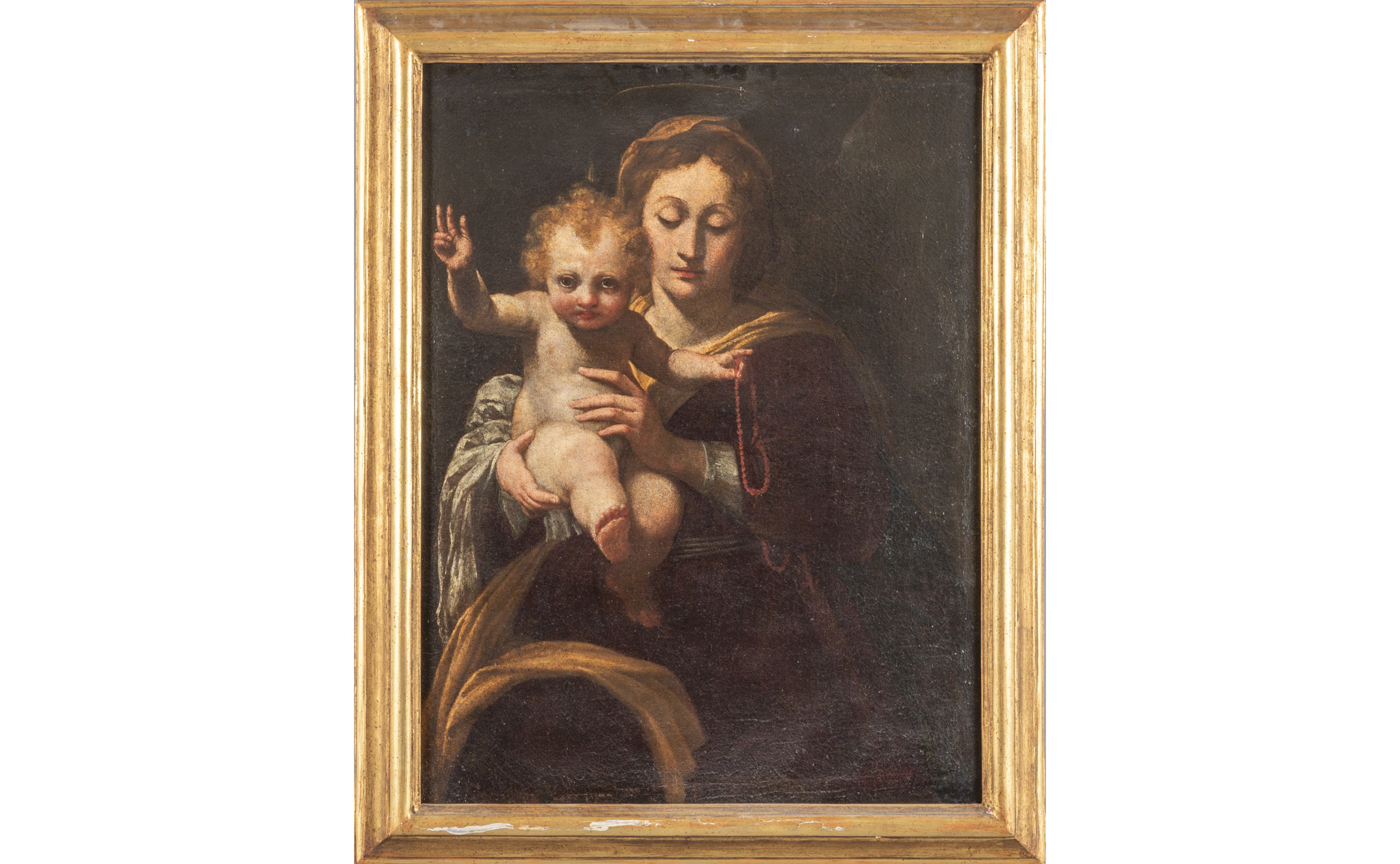 Scuola italiana sec.XVIII 'Madonna con Bambino' olio cornice in legno intagliato e dorato